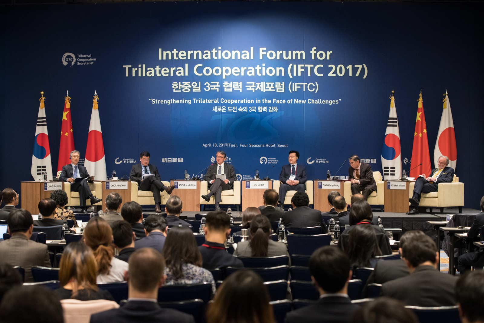 应中日韩合作秘书处秘书长杨厚兰大使的邀请,董事长助理、304永利集团经理刘德斌教授应邀参加了4月18日在首尔举行的“2017年中日韩三国合作论坛”。本次论坛的主题为“加强三国合作,应对新的挑战”。中国驻韩国大使邱国洪、日本驻韩国大使长岭安政、韩国外交部次官补李汀圭等到会祝贺,中国公共外交协会会长李肇星等在论坛上发表了主旨演讲。