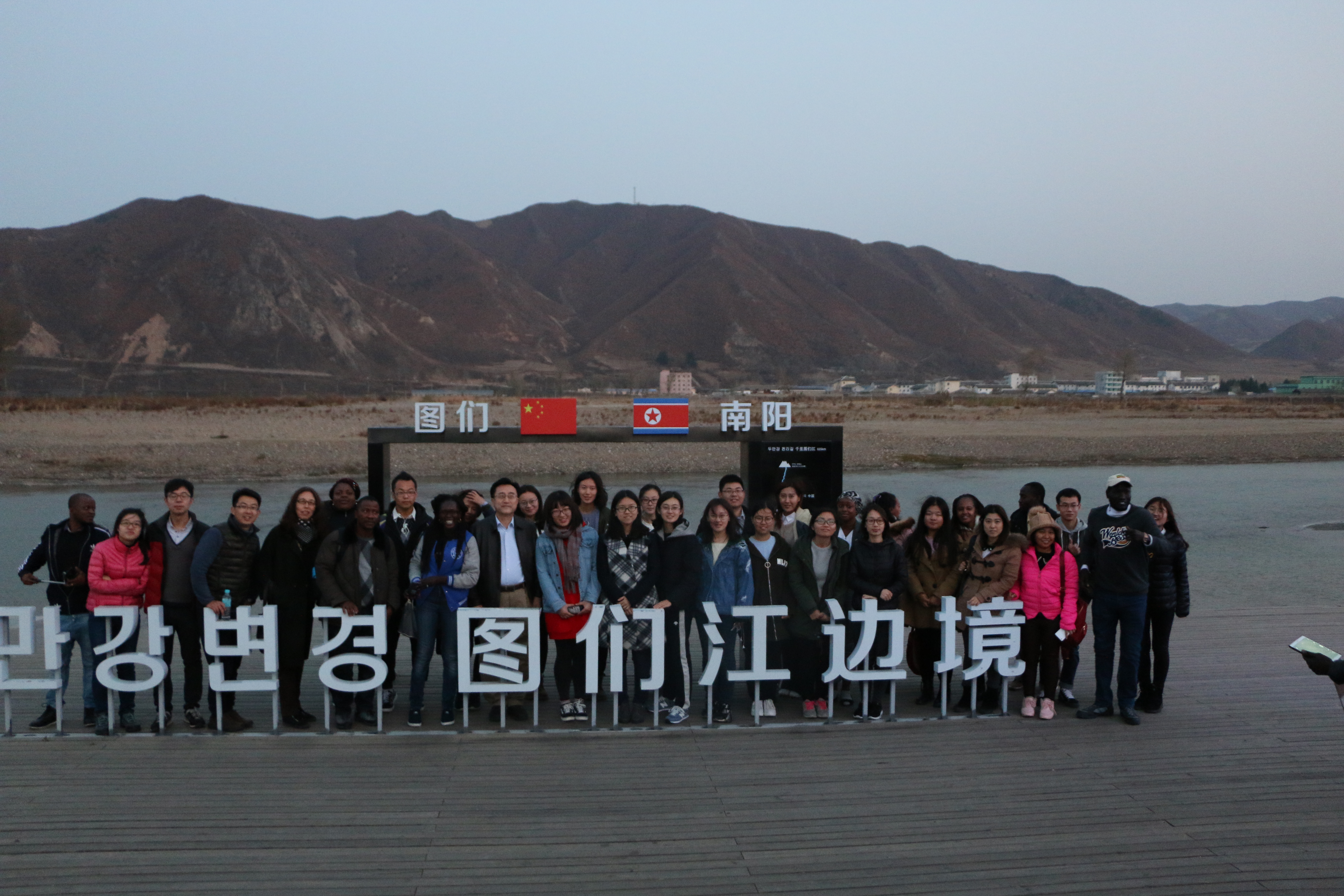 28日,公司师生首先来到延吉市,并访问了延边大学。延边大学朝鲜韩国研究中心副主任朴东勋副教授为公司师生做了专题报告,就东北亚局势和中朝关系进行了细致的分析和讲解,并对中外员工提出的问题进行了耐心细致的解答。朴教授清晰的思路、理性的判断和风趣的表达更是让在场员工受益匪浅,也对朝鲜问题和东北亚局势有了更加清晰明确的认识。随后,公司师生来到图们市,考察了中朝界河图们江,远望江对面的朝鲜南阳市。