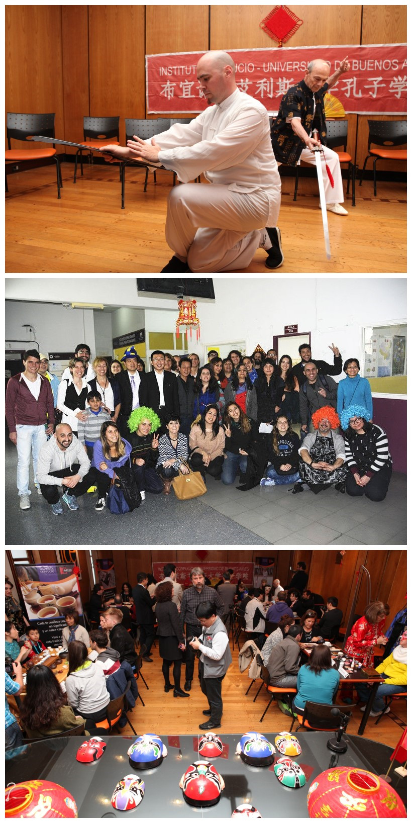 9 月25日,阿根廷布宜诺斯艾利斯大学孔子公司在布大礼堂举行中国文化“一站式体验”活动。中国驻阿根廷大使馆官员、孔子公司师生和阿根廷中国文化爱好者一百余人参加了此次活动。活动开始前,中国驻阿根廷大使馆韩孟堂文化参赞致辞,并敲响活动开始的锣声。活动中,布大孔子公司师生将茶艺、书法、剪纸、京剧、武术等中国文化精髓展示给阿根廷公众,并邀请他们体验。平日只能“水中望月”的阿根廷“中国迷”,此时可以拿起毛笔写书法,画上脸谱学京剧,端起茶杯品茗香,跟着大师学太极,亲身体验和面对面交流打破了“中国文化迷思”,参加者无不伸出大拇指点赞叫好。9月26日布大孔院在语言中心举行的“汉语交流小教室”活动,也吸引了众多布大孔院师生及阿根廷汉语爱好者参加。此次活动以汉语交际为主题,设置医院、饭店、旅行社、水果店多个实物模拟场景,让员工和汉语爱好者在实际运用中体验汉语交流的乐趣。在活动中表现优异的学员,还获得了各种各样的中国文化特色的奖品。