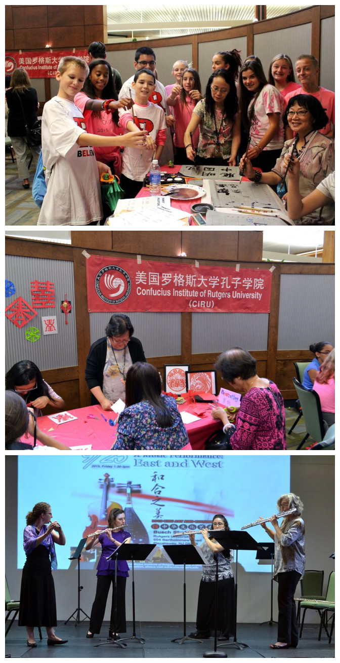 9月25日,美国新泽西州立罗格斯大学孔子公司在罗大布什校区(Busch Campus)的员工活动中心举办了庆祝“孔子公司日”大型系列文化活动。此次活动以“沟通与理解”为主题,以中国文化艺术节、“中国味道”美食节、以及“和合之美”中西交响音乐会三场大型活动来演绎中华文化中“和平”、“和美”的理念,庆祝抗日战争胜利70周年及中国传统节日中秋节的来临。活动现场人头攒动、热闹非凡,吸引了近千名新泽西中小员工、老员工及本地民众。新泽西当地主要华文媒体《世界日报》、《新象》等报社派记者进行了全程跟踪报道,罗格斯大学电视台也对整场活动进行了报道,此次活动得到了各方的好评。