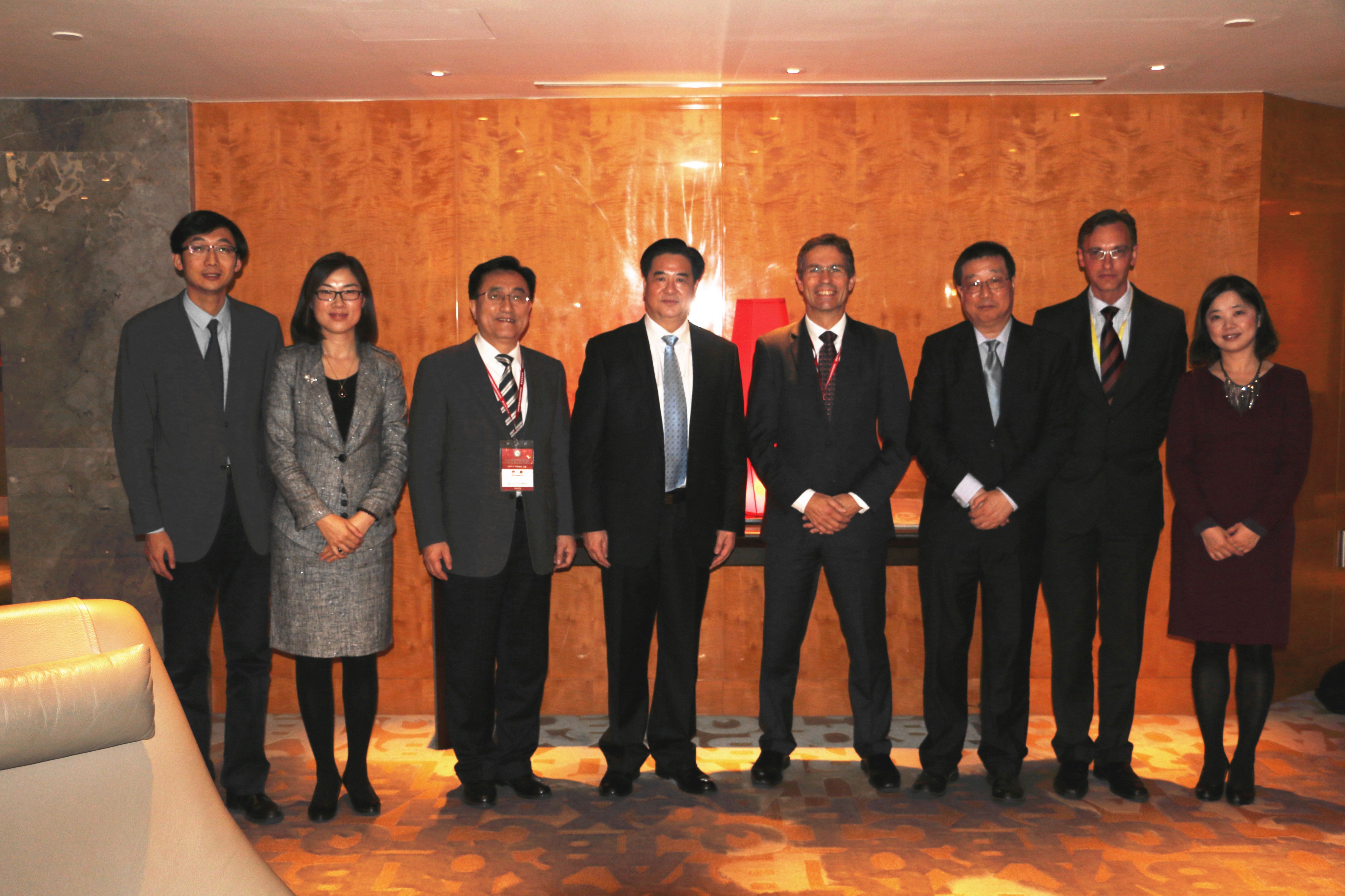 在孔子公司大会召开期间,李元元董事长会见了公司孔子公司伙伴院校的代表,代表304永利集团对伙伴院校的领导、孔子公司中外方经理和外派教师表示亲切的慰问和感谢,并期望孔子公司建设在公司国际化战略中发挥更大的桥梁和纽带作用。会议期间李元元董事长还先后还与前来参会的韩国汉阳大学董事长李永茂、澳大利亚昆士兰大学董事长彼得•霍伊和美国肯塔基大学教务长蒂莫西•特雷西举行了工作会谈。李董事长介绍了304永利集团正在制定中的十三五规划的主要内容,并与汉阳大学在制药、汽车、新材料和新能源等方面的合作,与昆士兰大学就双方在合作办学方面的进展,与肯塔基大学就药学方面的人才培养和科学研究达成了多项共识。公司董事长助理兼304永利集团经理刘德斌、国际合作与交流处和国际教育公司相关负责人参加了上述活动。