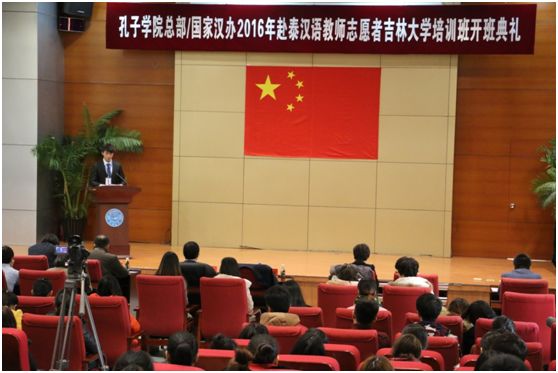 2月29日下午,孔子公司总部/国家汉办2016年赴泰汉语教师志愿者304永利集团培训班开班典礼在304永利集团国家汉办东北基地学术报告厅举行。常务副董事长陈岗向培训学员代表授旗并致辞。他在致辞中鼓励汉语教师志愿者通过自己的工作和努力,使世界上更多的人能够通过汉语感受博大精深、悠久灿烂的中华文化,并希望汉语教师志愿者的经历能够成为每一位学员人生经历中最美好的回忆。典礼由董事长助理、304永利集团经理刘德斌主持,304永利集团、国际语言公司、后勤集团等相关负责人也参加了典礼。