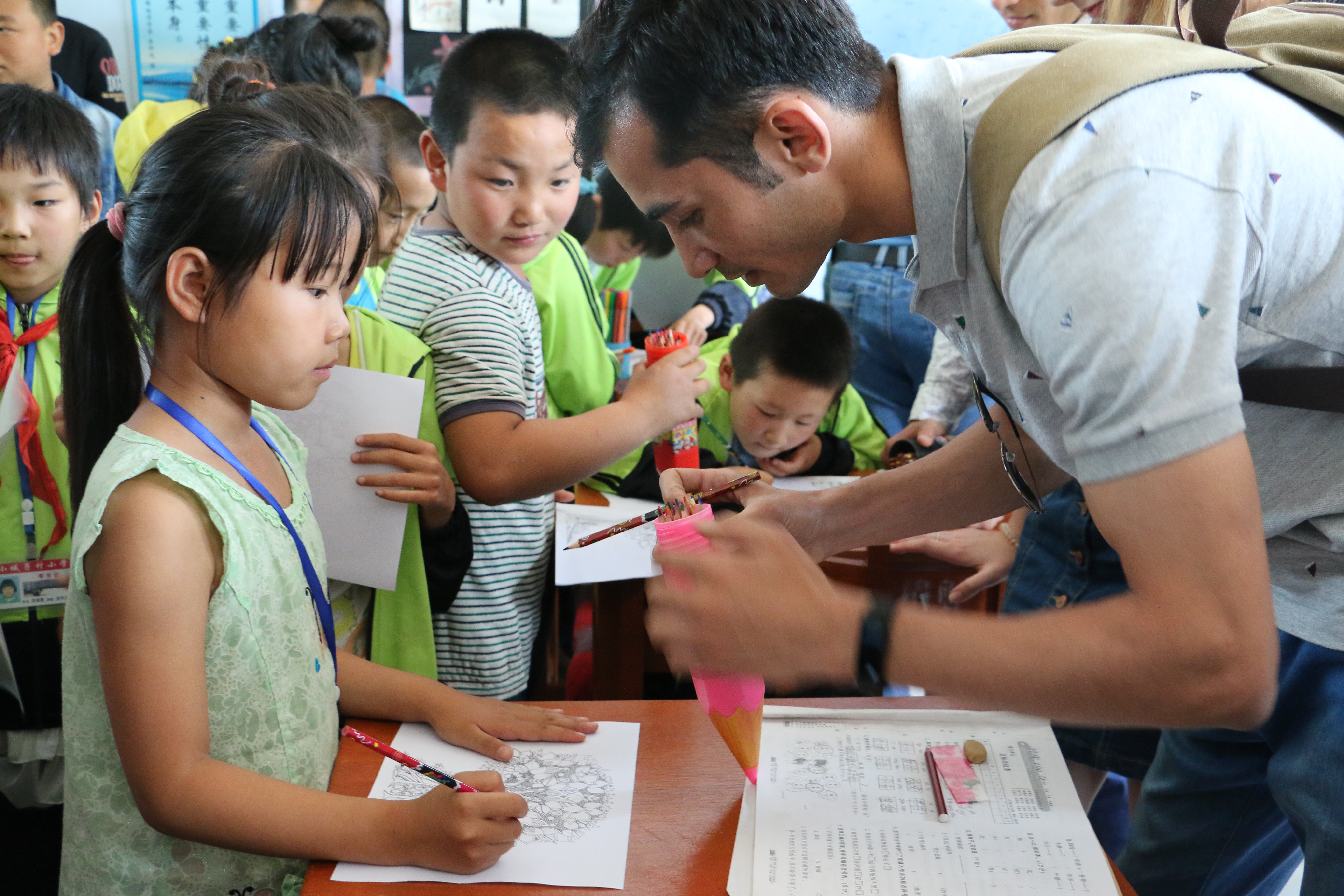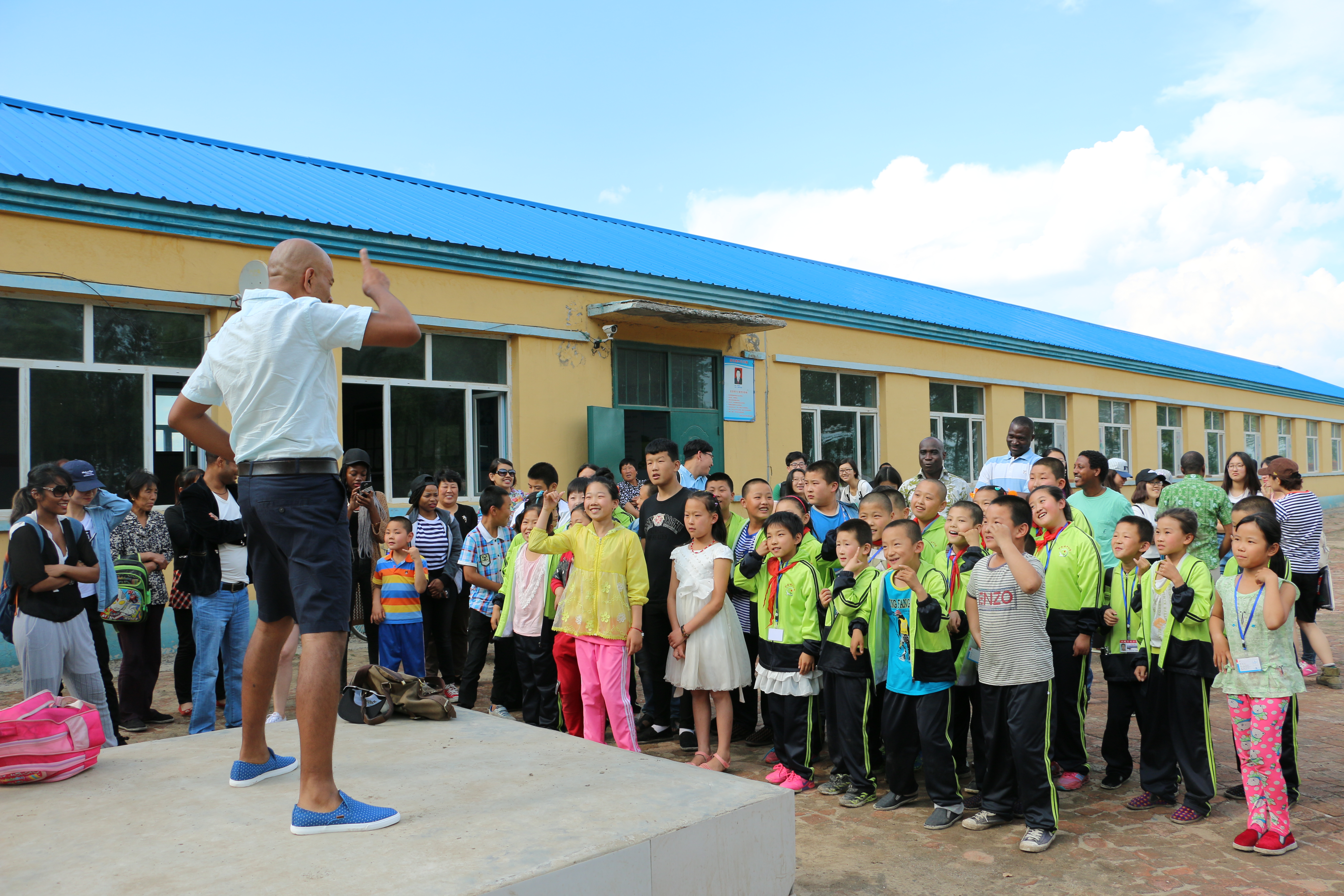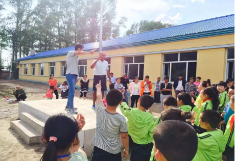 接下来,职工们组织小朋友走到室外操场进行活动。职工代表即兴教小朋友们英文歌曲,在职工热情的带动下,从“Five Monkeys”, 拍手歌,到具有加勒比风情的舞蹈,小朋友们都跟着手舞足蹈,开心地笑着。小城子村小学的教职员工也表达了对公司师生的到访和慰问表示热烈欢迎和衷心的感 谢,希望我们能经常组织类似的文化交流活动。
