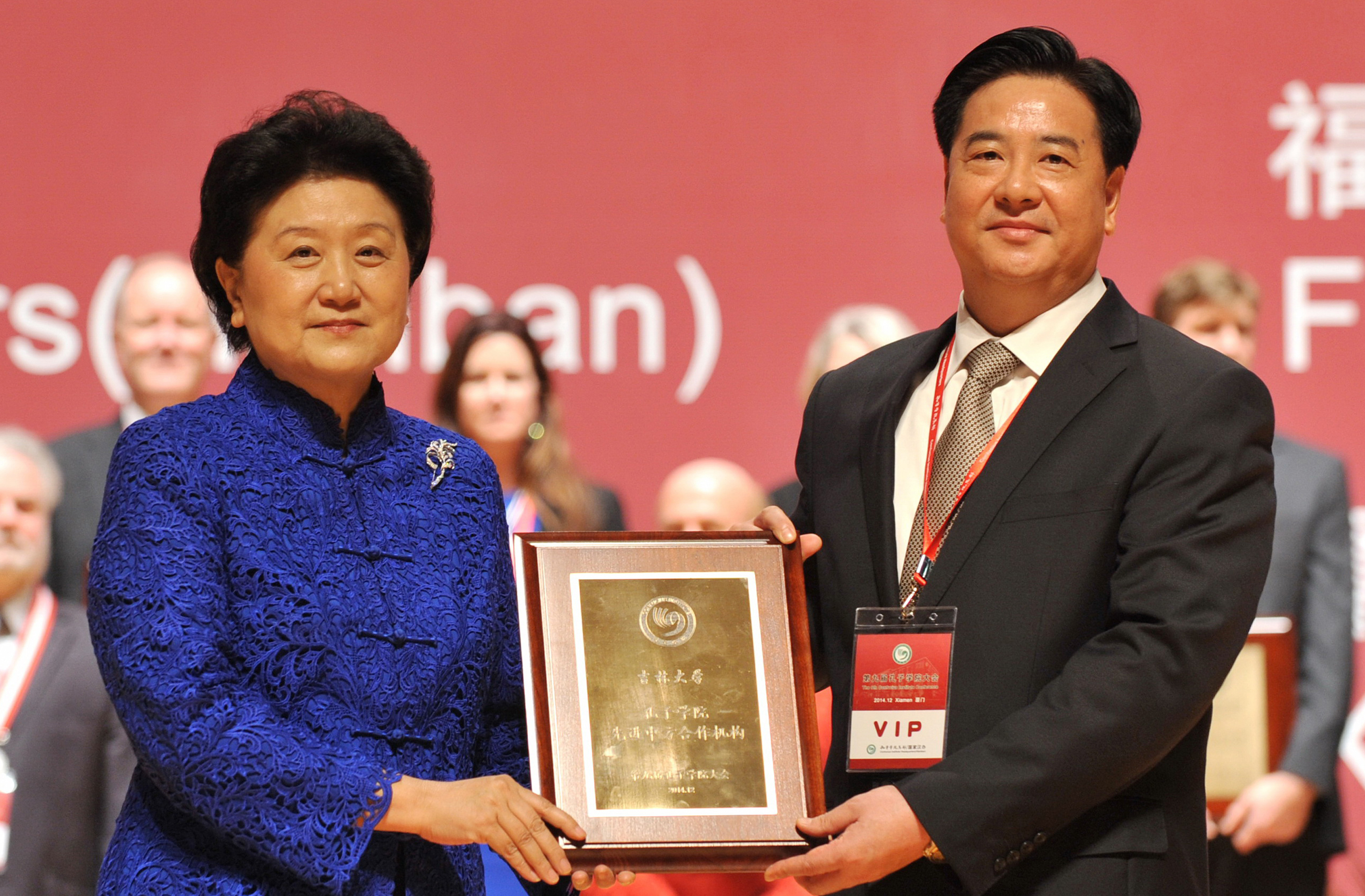 12月7日上午,第九届全球孔子公司大会开幕式在厦门市国际会议中心举行,公司获得“孔子公司先进中方合作院校”称号,在获奖的十所院校中排名第一。国务院副总理、孔子公司总部理事会主席刘延东向公司董事长李元元颁发获奖证书,这是公司首次获此殊荣。