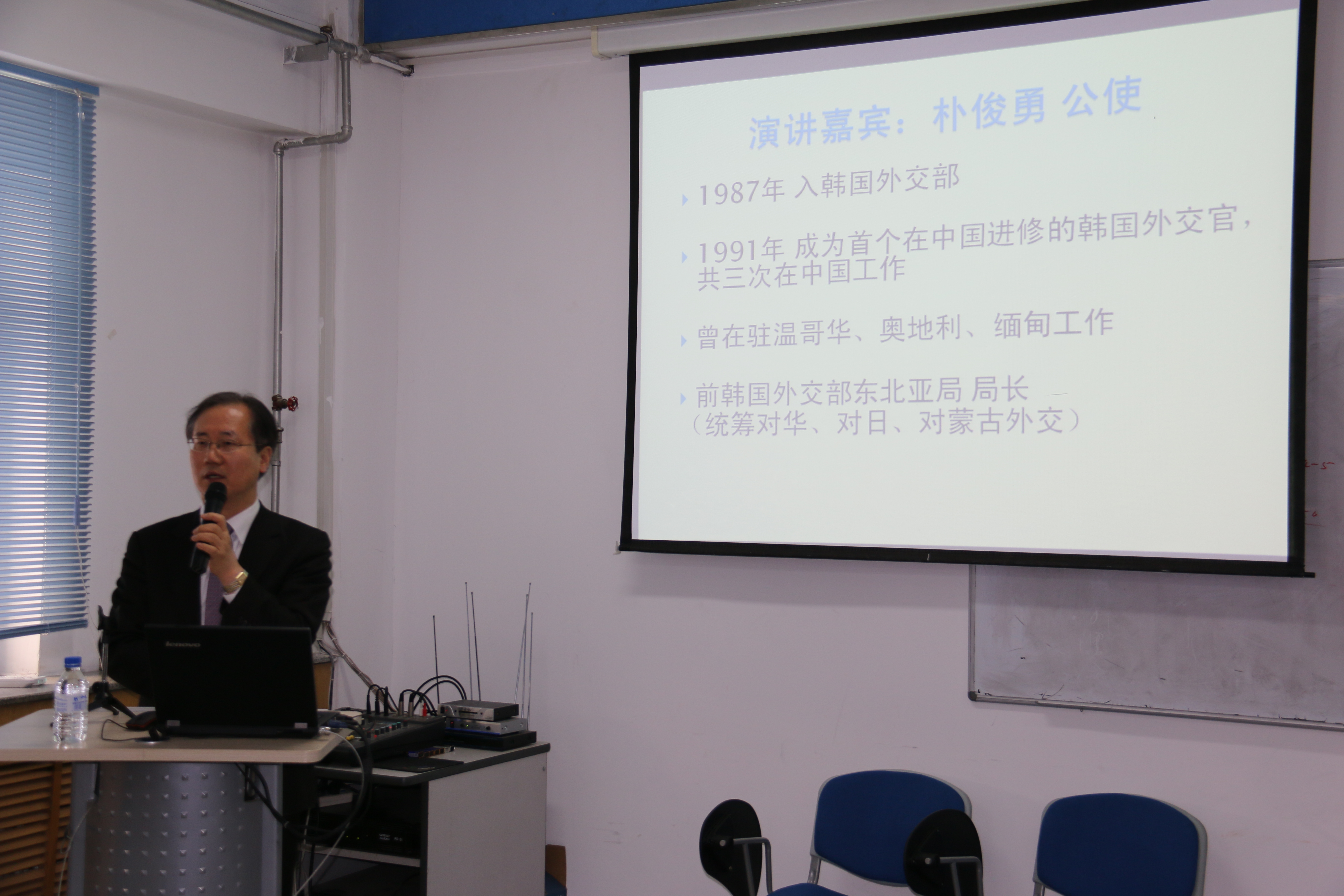 12月22日,韩国驻华大使馆朴俊勇公使来到公司,面向外交学专业本科生做了主题为“现代韩国的形成及中韩关系之评价”的专题报告,报告由王秋彬副经理主持。