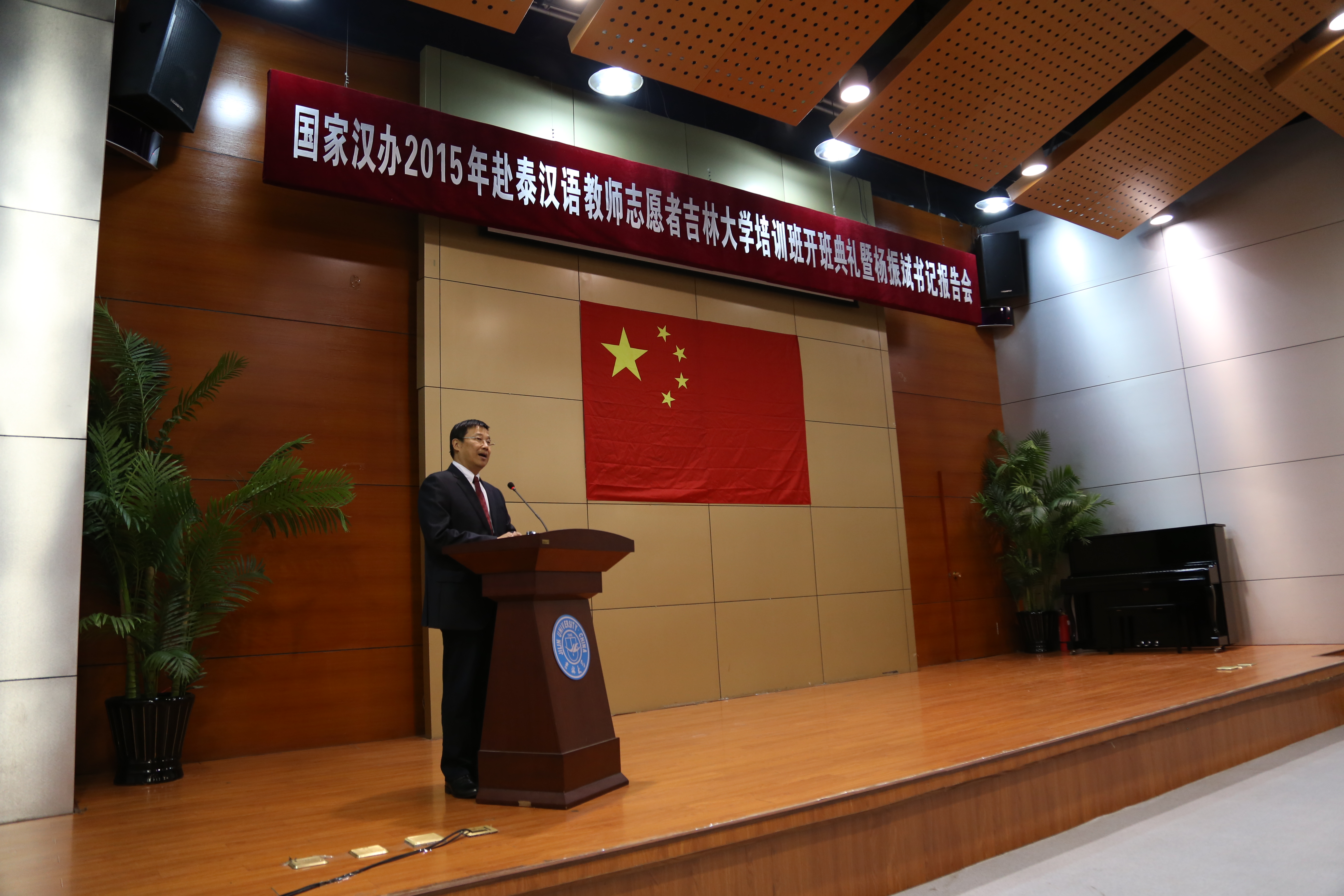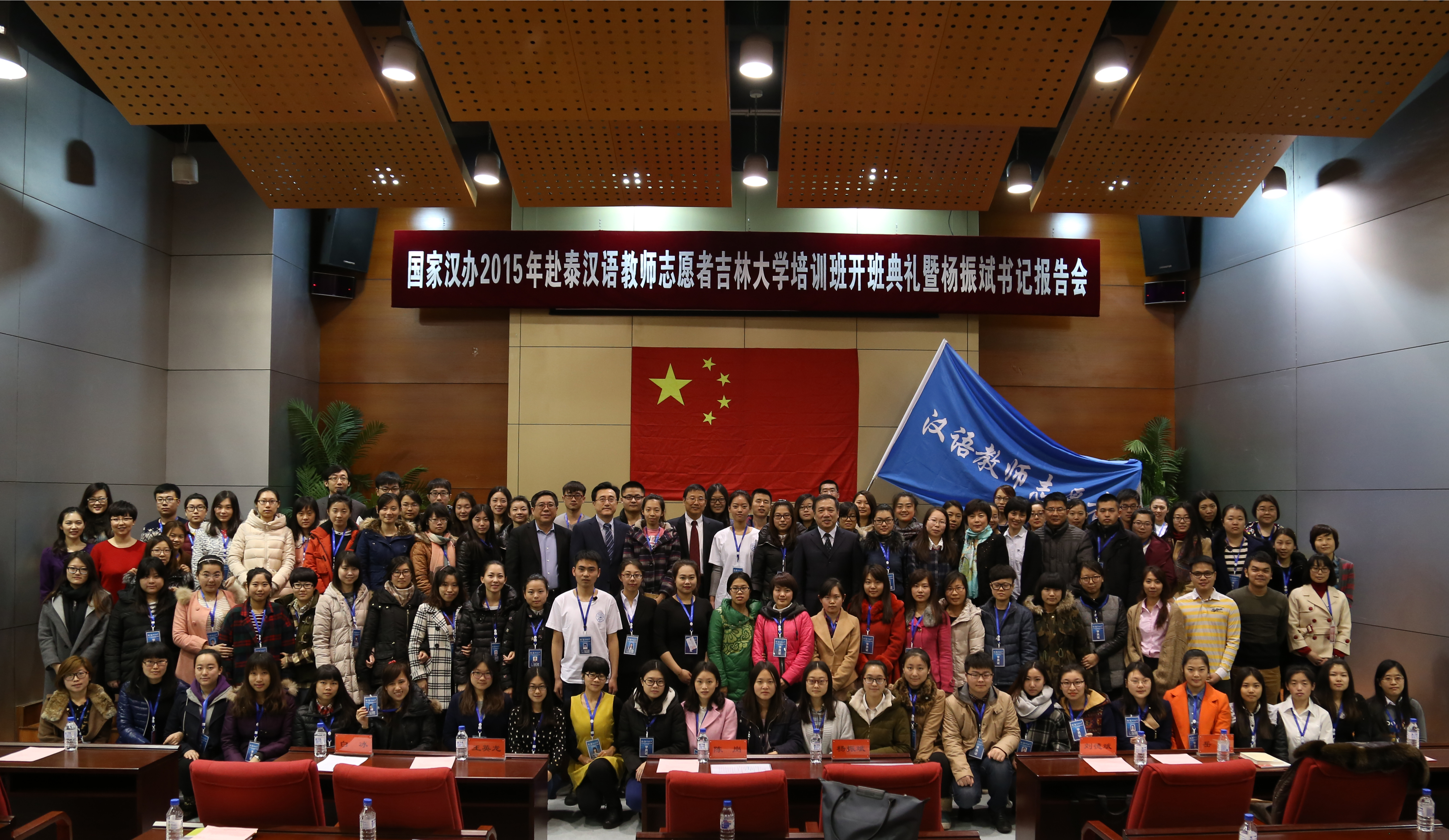 3月12日上午,国家汉办2015年赴泰汉语教师志愿者304永利集团培训班开班典礼在304永利集团国际汉语教育东北基地学术报告厅举行。公司党委书记杨振斌为培训班授旗并为培训学员作报告。304永利集团、国际交流服务中心和国际语言公司等部门负责同志参加了开班典礼和专题报告会。典礼由副董事长陈岗主持。