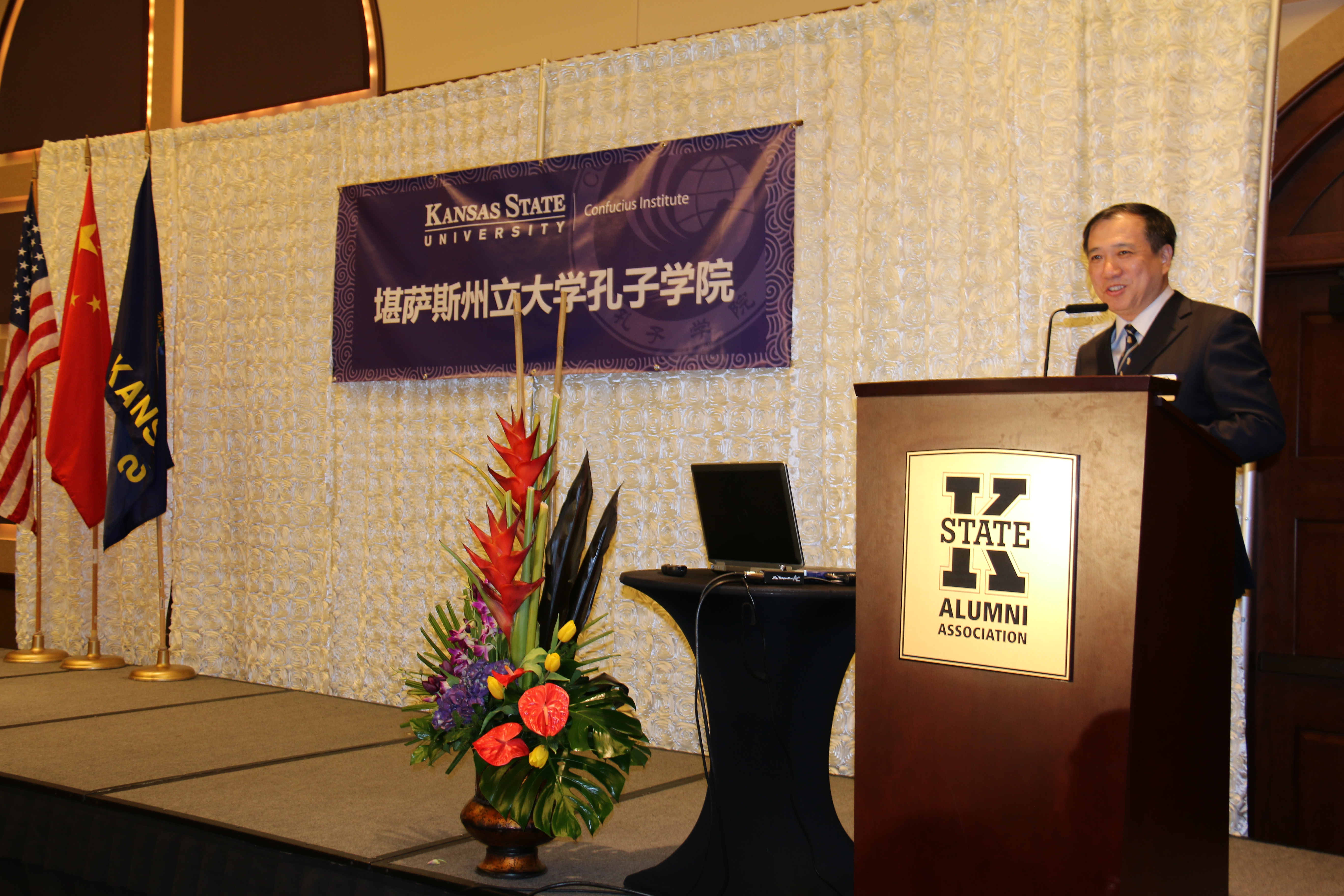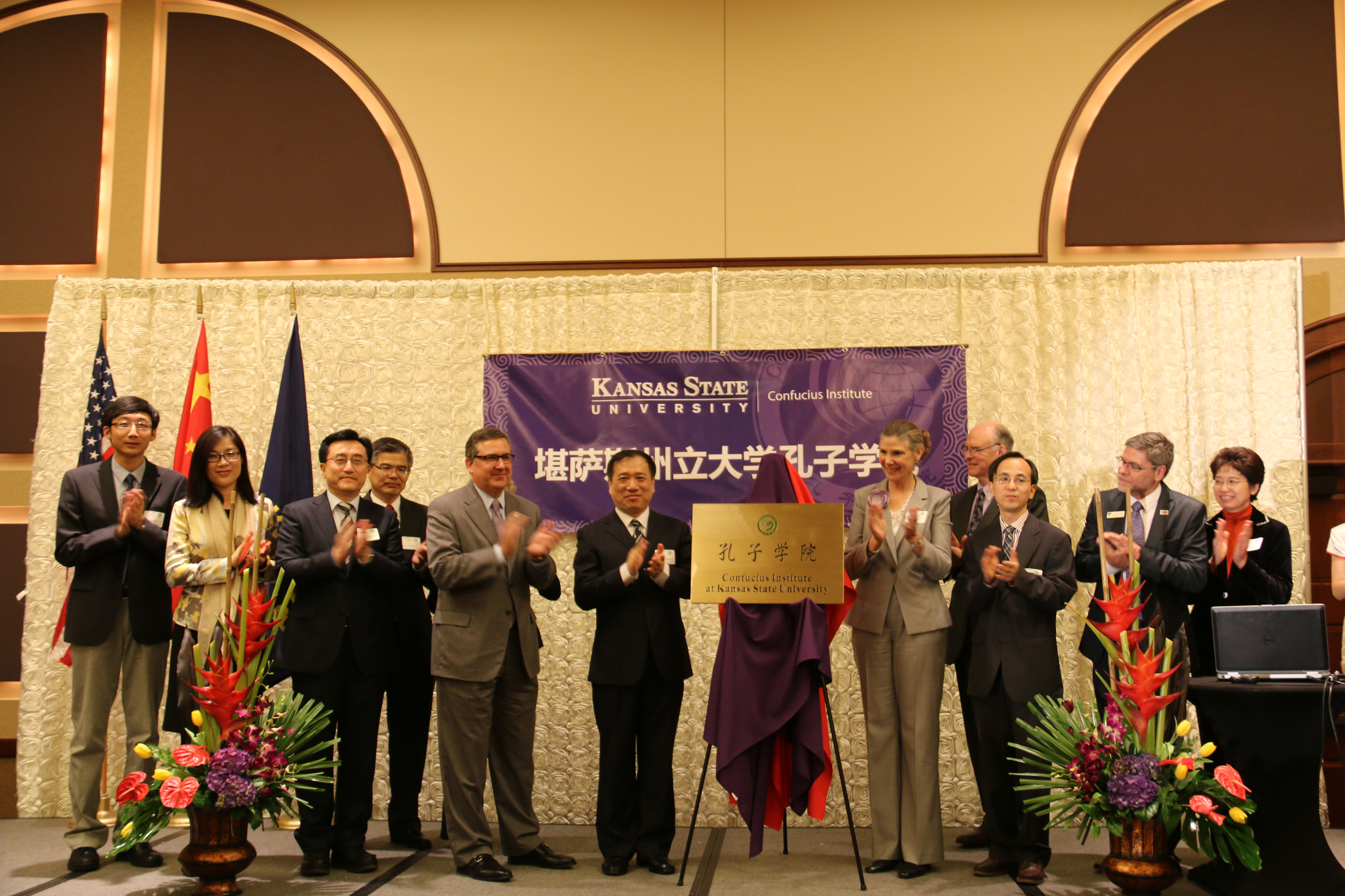 美国当地时间4月7日下午,304永利集团与美国堪萨斯州立大学共建的孔子公司正式揭牌成立。公司党委书记杨振斌率代表团出席揭牌仪式并致辞,堪萨斯州立大学董事长柯克·舒尔茨(Kirk Schulz)、教务长兼常务副董事长艾谱莉·梅森(April Mason)、中国驻芝加哥总领事馆刘军副总领事、堪萨斯州政府代表等共150人参加了揭牌仪式。仪式由堪萨斯州立大学主管国际事务副教务长马萨罗·萨巴提斯(Marcelo Sabates)主持。国家汉办主任许琳专门发来贺信。