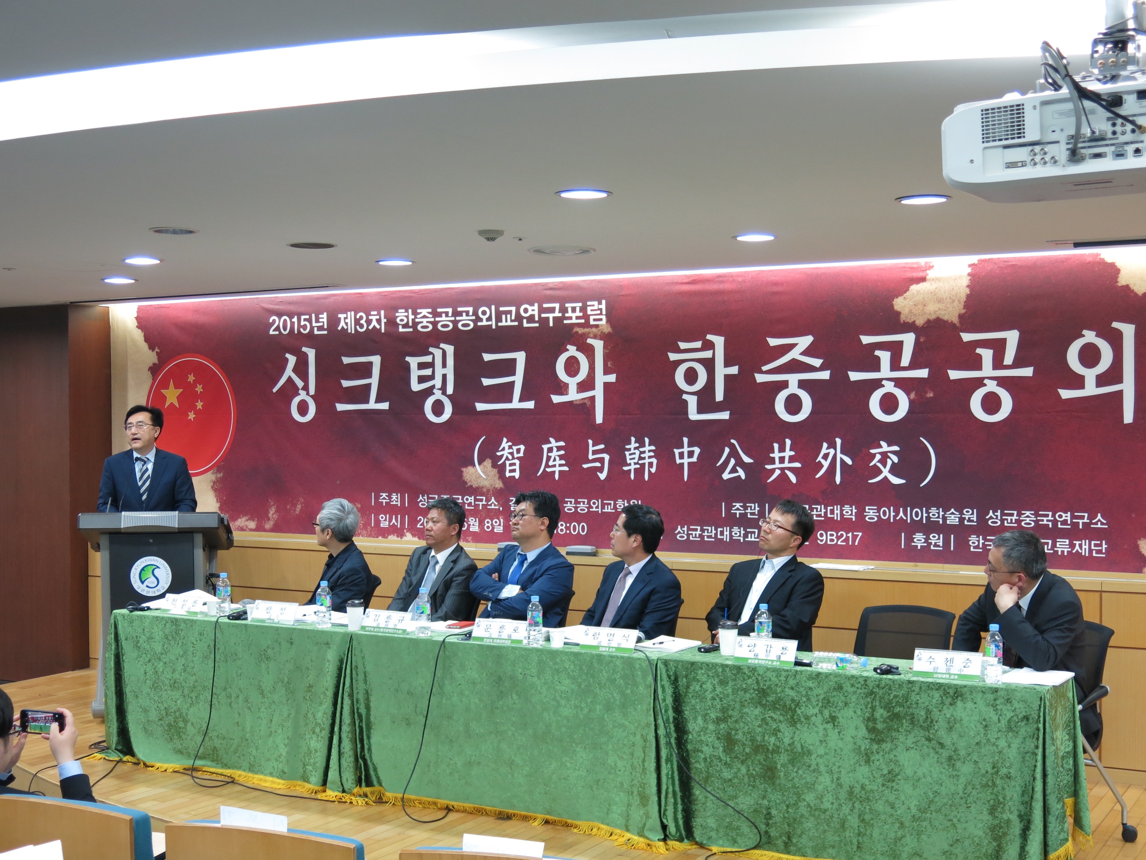 本次论坛由成均馆大学成均中国研究所所长李熙玉教授主持,来自成均馆大学、韩国国立外交院、汉阳大学、亚洲大学、西江大学、韩国海洋战略研究院、复旦大学、南京大学的三十余位学者参加了此次会议。成均馆大学董事长郑奎相、中国驻韩国大使馆总领事董敏杰和韩国国立外交院外交安保研究所所长申凤吉在开幕式上发表贺词,向本届论坛的顺利召开表示祝贺。刘德斌经理应邀作了题为“中国的智库建设与中韩智库的交流与合作”的主题发言,指出新一届中国领导人高度重视智库建设,中国智库发展正在迎来一个新时期,中韩智库交流是中韩公共外交的交流与合作的重要组成部分,并将为中韩关系的健康发展提供更为有效的智力支持。