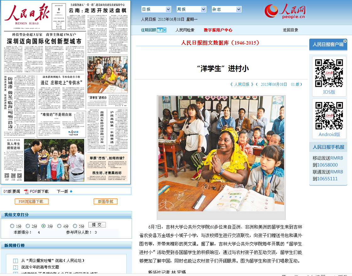 此次活动得到了吉林电视台公共频道的全程跟踪报道,《人民日报》6月8日头版也对活动进行了报道,http://paper.people.com.cn/rmrb/html/2015-06/08/nw.D110000renmrb_20150608_3-01.htm。