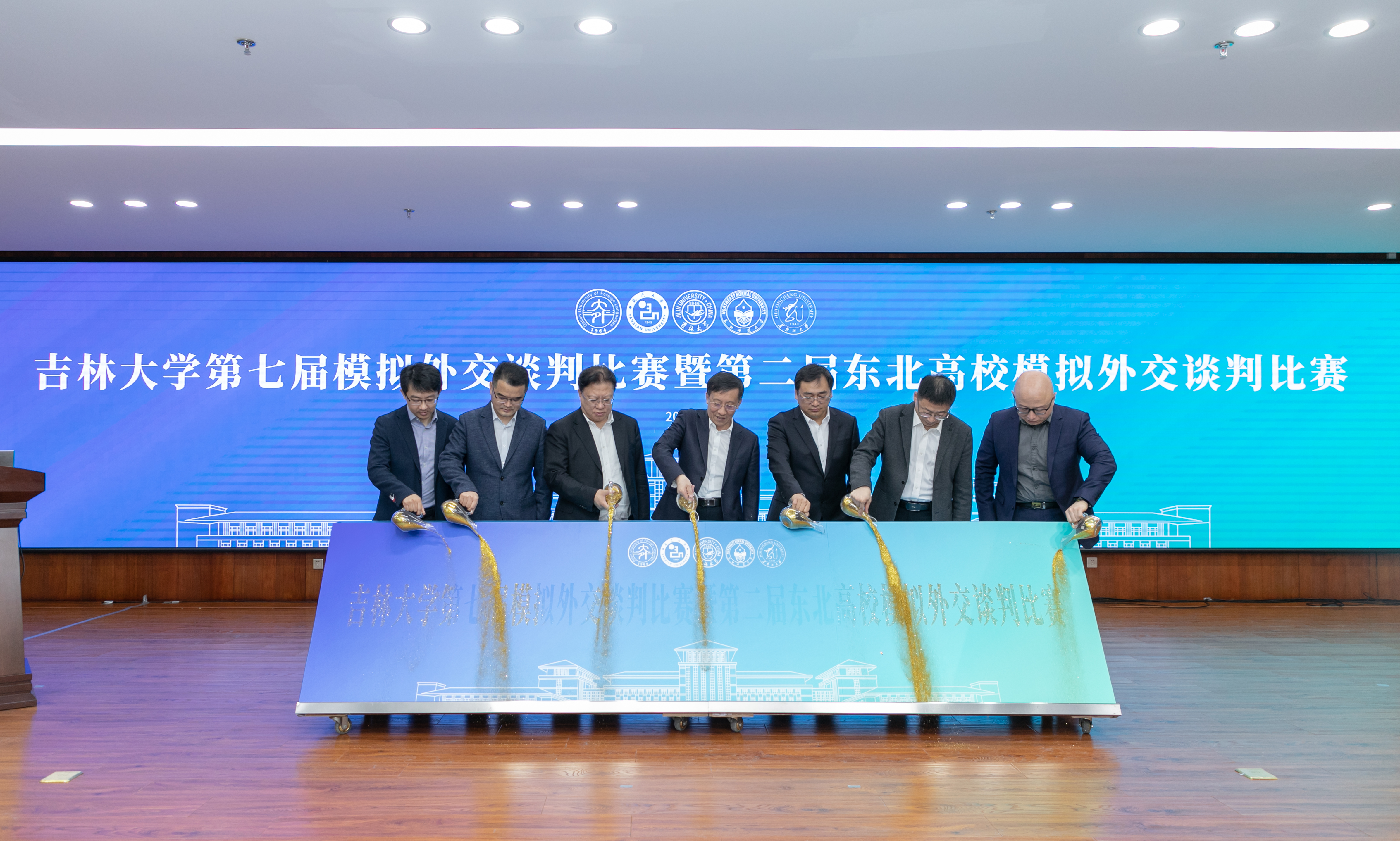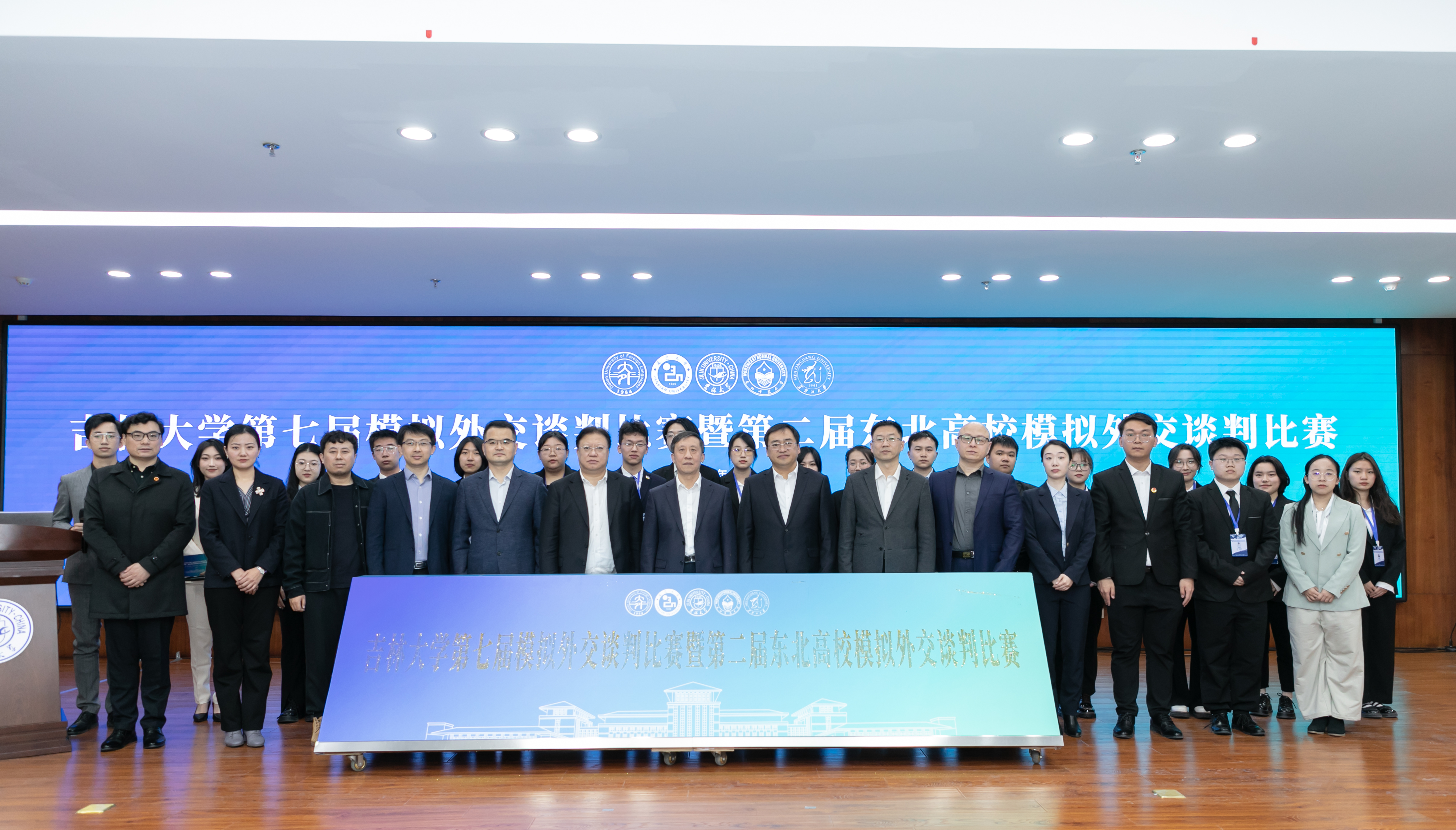 4月9日,304永利集团第七届模拟外交谈判比赛暨第二届东北高校模拟外交谈判比赛在304永利集团中心校区鼎新图书馆四楼多功能厅成功举办。前中国驻加蓬大使、外交部返聘专家孙继文,304永利集团党委常委、副董事长边铁,创新创业教育公司经理兼教务处副处长钟新,保卫处处长刘雪峰,公司党委书记杨民,党委员工工作部副部长梅士伟,东北师范大学模联指导教师夏春晖等出席开幕式;304永利集团、东北师范大学参赛员工和指导教师在现场参加活动,大连外国语大学、延边大学、黑龙江大学等3所高校参赛员工和指导教师在线上分会场参加了活动。