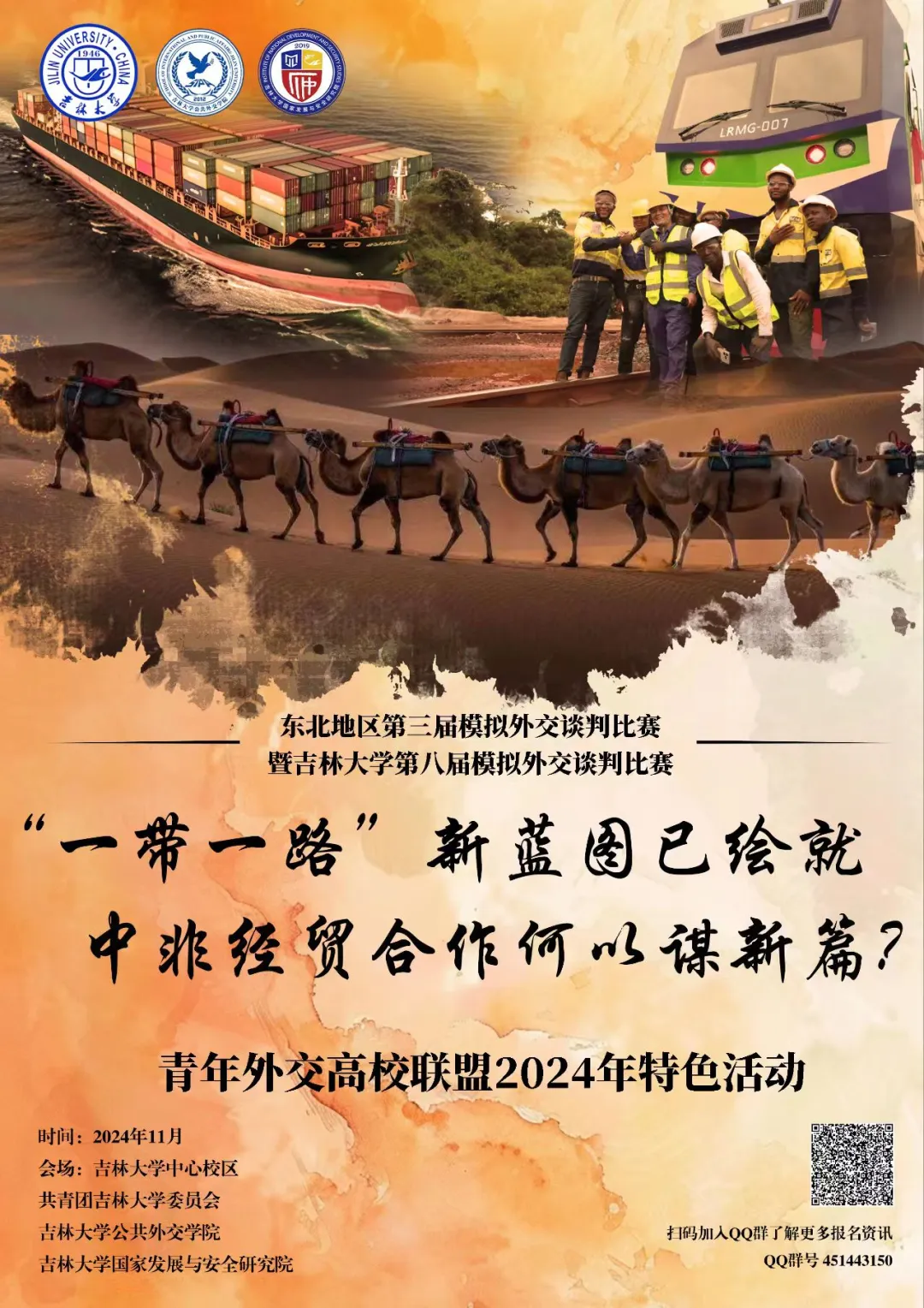 本届比赛将围绕“‘一带一路’新蓝图已绘就,中非经贸合作何以谋新篇?”这一主题模拟进行多方外交谈判,立足于中非高质量共建“一带一路”的合作愿景,针对中非双方在非洲大陆自贸区的经贸合作问题展开探讨,让更多青年学子体会外交谈判的魅力。