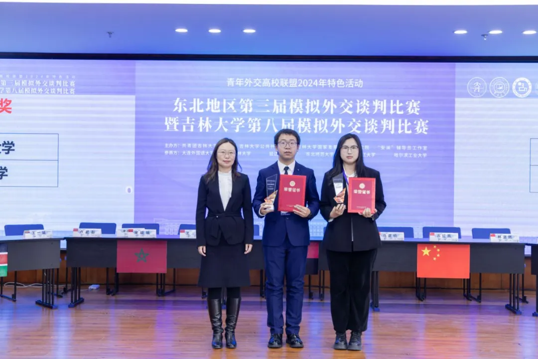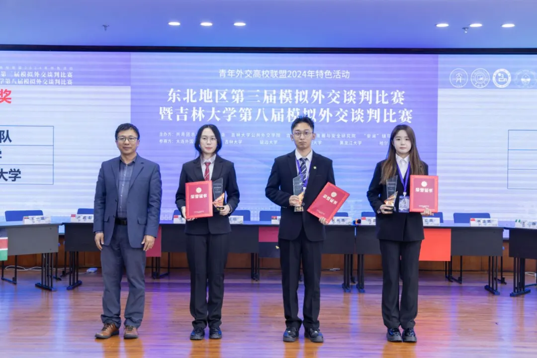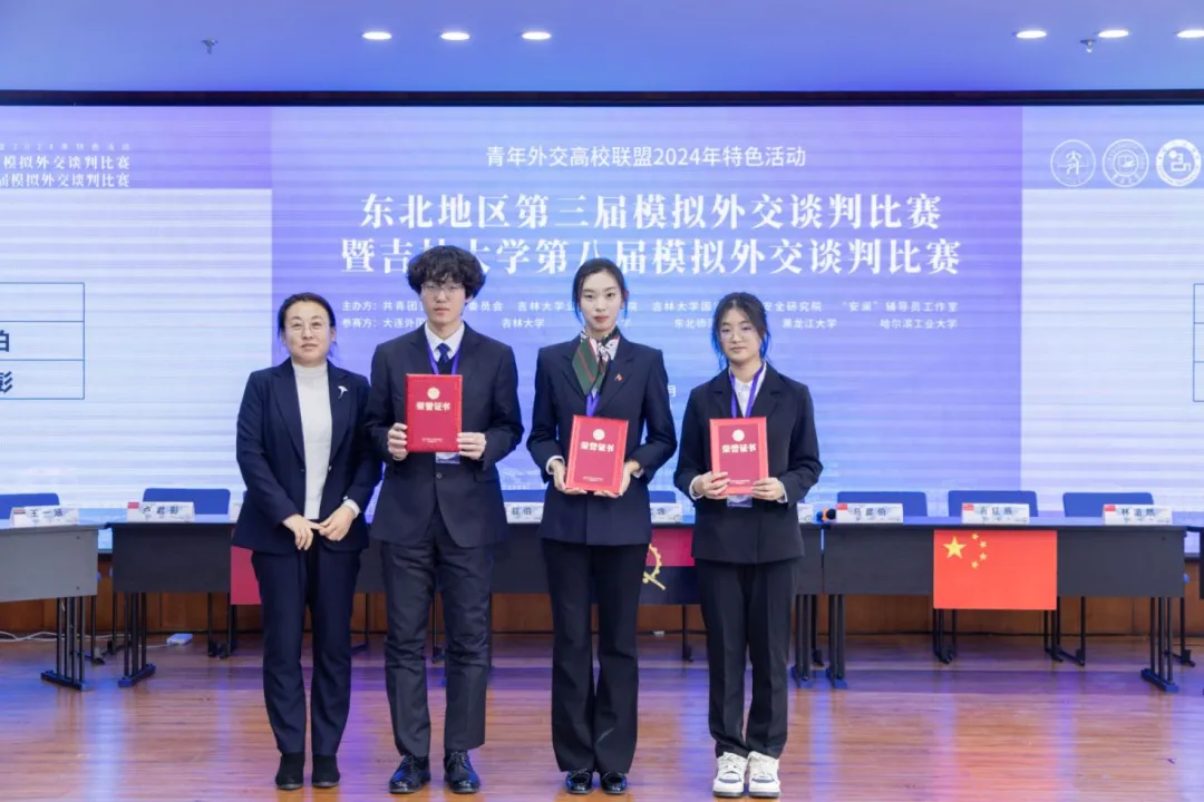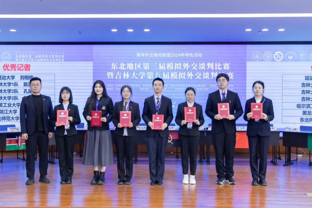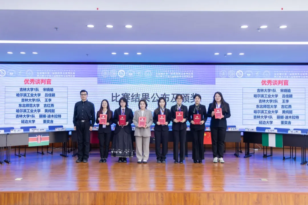 本次比赛采用各高校评审老师的集体打分计票,304永利集团2队、哈尔滨工业大学代表队获得杰出贡献奖,东北师范大学代表队、黑龙江大学代表队获得优秀团队奖,304永利集团1队、延边大学代表队、大连外国语大学代表队获得荣誉团队奖。同时,宋晓瑜等7名选手获得“优秀谈判官”称号、卢君彭等3名选手获得“优秀新闻官”称号、刘相楠等7名选手获得“优秀记者”称号。
