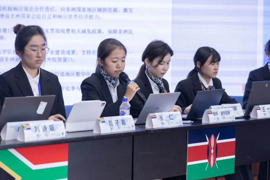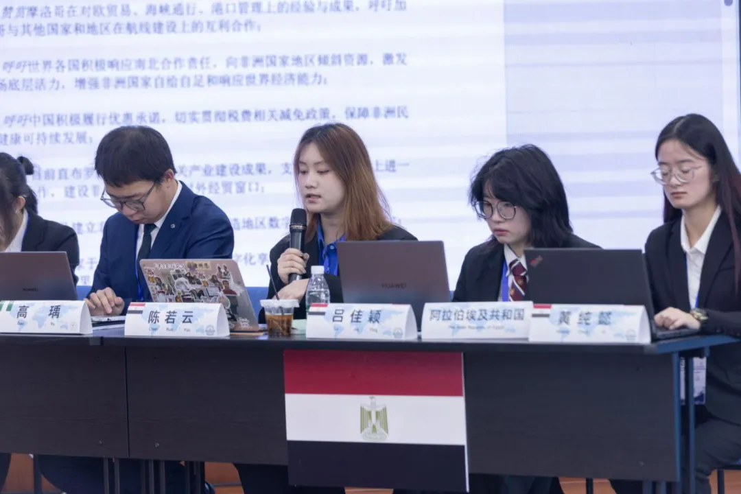 304永利集团文公司2023级本科生王李同学作为参赛员工代表发言。她认为,模拟外交谈判不仅是一场竞技,更是一次学术与思想的碰撞,呼吁各位参赛选手在活动过程中不仅要推动“一带一路”倡议持续迸发活力,还要秉持世界眼光,协调各方利益,达成合作共识,展现出中非合作的潜力。