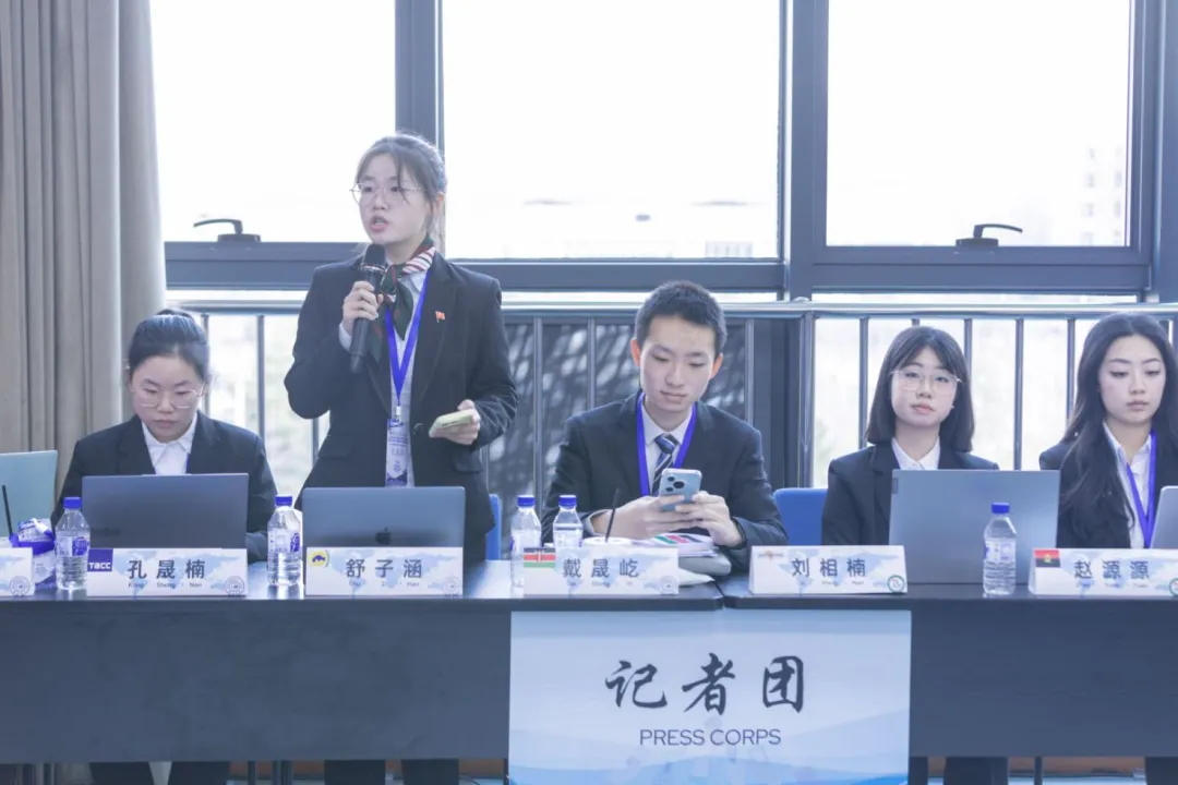 在接下来的谈判比赛中,各校谈判官坚定捍卫己方立场,凭借扎实的专业素养和精湛的谈判技巧,就中非经济合作议题进行了深入讨论;新闻官们在新闻发布会环节机智应对,坚守国家立场,以出色的临场反应能力纵横捭阖,代表本国人民发声;场下记者思维敏捷,提问一针见血。比赛期间的精彩较量和交流充分展示了青年员工对国家安全战略规划的明确把握与深刻理解,以及他们的政治素养、全球视野、责任担当。观众们目睹了非军事领域的国家博弈,也领略了参赛选手们的卓越风采与外交外事工作的独特魅力。此外,观众们热情参与了知识问答和随机抽奖等互动环节,为紧张的谈判氛围增添了一丝轻松和乐趣。