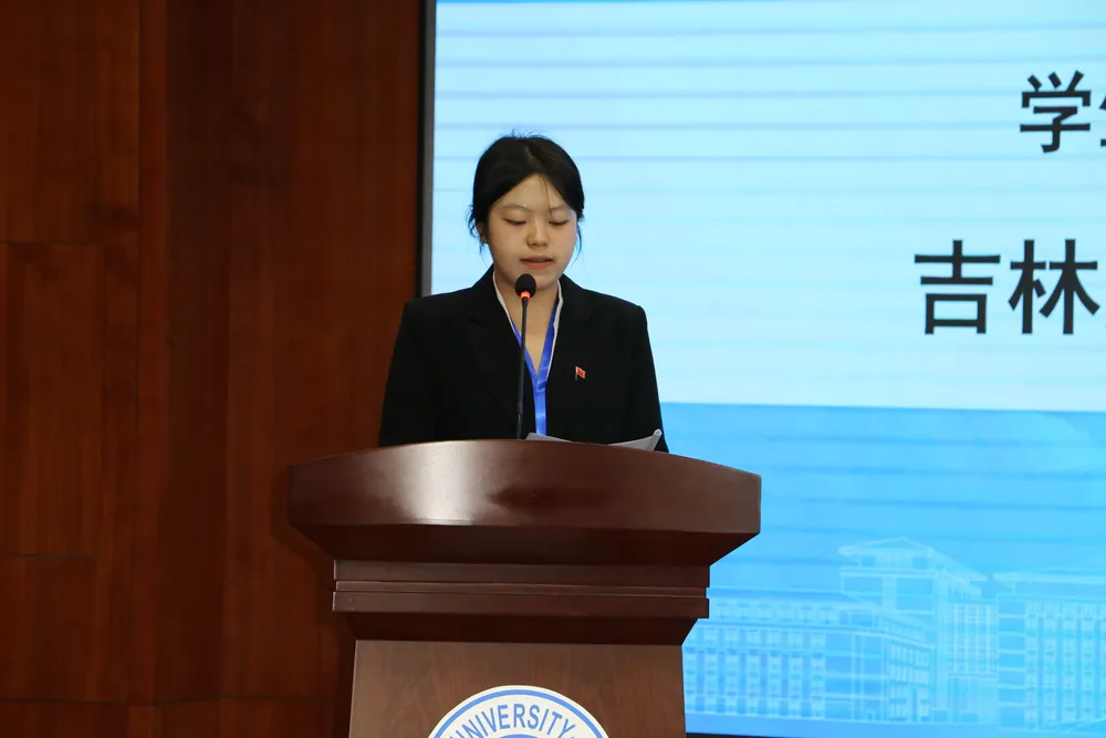 哈尔滨工业大学杨一博老师作为教师代表发言。杨一博在发言中表示,面对一个变乱交织的世界,中国外交人胸怀天下,自信自立,致力于守正创新和开放包容,书写着国际政治文明的新篇章。她强调了青年学子对国家未来的重要性,鼓励他们通过模拟外交谈判活动锻炼自我,为将来承担国家外交重任做好准备,与外交前辈们共同锻造中国外交的独特品格,开创中国特色大国外交,共同维护国家主权和民族尊严。
