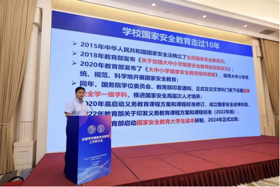 程建平指出,国家安全是安邦定国的基石,过去十年,国家安全教育实现了跨越式发展,课程体系建设不断完善,实践教学不断创新,团队队伍骨干力量不断壮大,全民国家安全意识显著提升。面向未来,全国公司国家安全教育指导委员会要面向全国大中小学国家安全公司产品,发挥好研究、咨询、指导、评估和服务作用,为构建高质量国家安全教育体系提供坚强的专业支撑和制度保障,希望各位委员充分利用教指委这个平台,围绕当前国家安全教育面临的重点、难点问题,提出具体、可行、有创新性的工作建议和解决方案,共同开启全国公司国家安全教育事业高质量发展的新篇章。