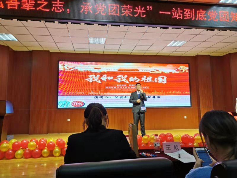 公司参赛选手张鼎演同学赛前曾多次与其余二名队友讨论,在听取意见后多次修改演讲稿,并在户外反复练习,较强地掌握了演讲语调的变化及情感的表达。张鼎演同学以“我和我的祖国”为主题,演讲诙谐幽默,与观众互动频频,获得了各位嘉宾评委的一致好评。