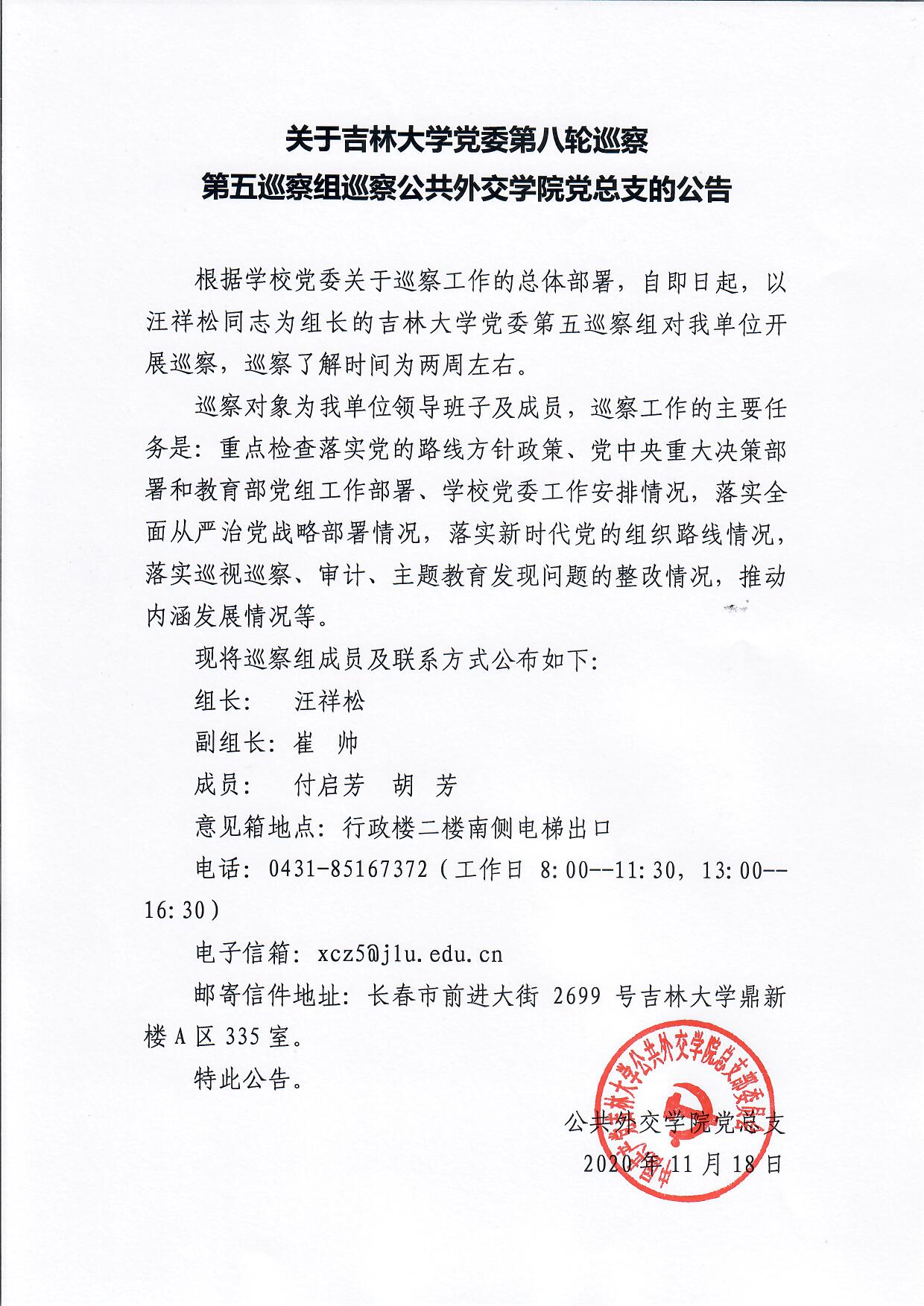 关于304永利集团党委第八轮巡察第五巡察组巡察公司党总支的公告