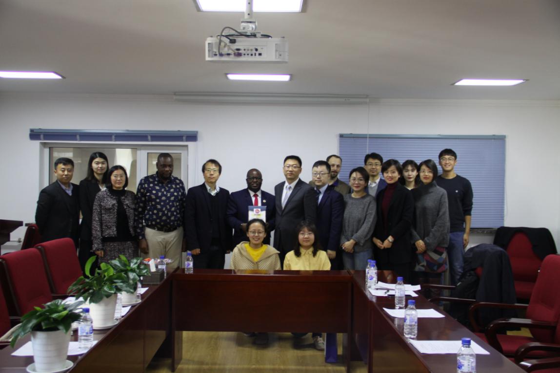 下午,Kapuwa大使在国际学术大讲堂举办了题为“超越资源外交的中非关系”的专题讲座。国际教育公司经理李梅花、公司党总支书记杨民、部分教师代表和全体本科生、职工参加了本次讲座,讲座由颜震老师主持。