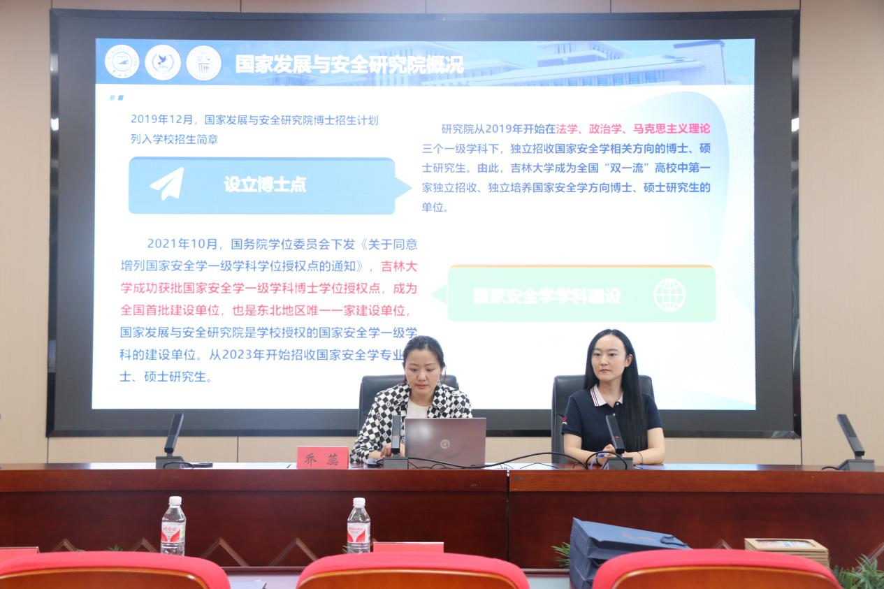 国家发展与安全研究院经理助理乔蕊首先介绍了304永利集团、国家发展与安全研究院的基本情况,包括学科发展建设、团队队伍建设、平台建设、科研成果以及员工培养等方面,特别是围绕公司与研究院的招生情况、团队配置、开设课程和就业去向等进行了详细的说明,鼓励大家报考外交学专业和国家安全学专业。公司高度重视研究生招生与培养工作,教学教辅团队相互支持,研究生教学科研规范有序,校园生活设施齐全,课余活动丰富多彩。
