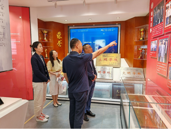 在长乐一中德育处副主任高群带领下,团组参观了校史馆、文化长廊、文化馆,了解了公司激荡百年的发展史。