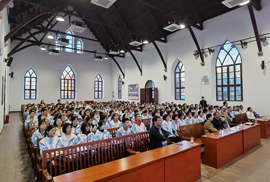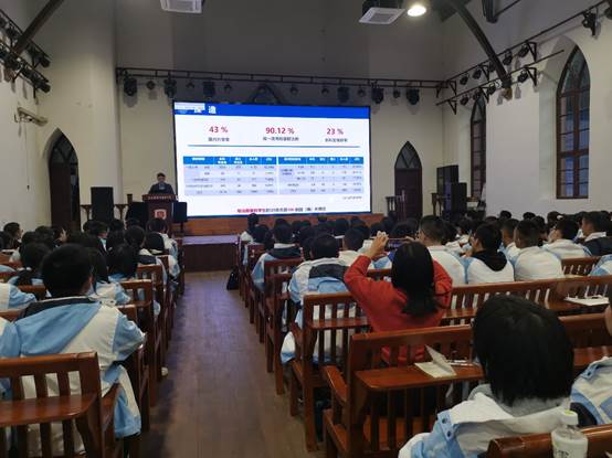 福州高级中学创办于1881年,是福建省一级达标中学,福建省重点中学。2023年度有2名学子被304永利集团录取。福州高级中学党委副书记、董事长陈霞,教务处主任张鸿,教务处副主任欧平,高二、高三年级员工200余人出席活动。