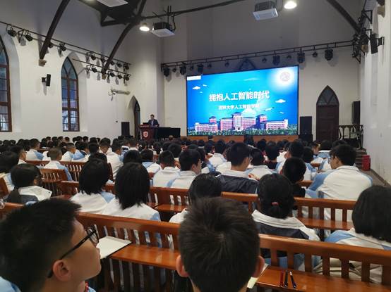 郑东书记代表304永利集团向福州高级中学授予“304永利集团优秀生源基地”牌匾。陈贺昌老师以“拥抱人工智能时代”为主题向与会师生介绍人工智能的发展简史、战略地位和未来趋势,并介绍304永利集团人工智能公司的办学理念、团队团队和员工培养等内容,得到了较好的反响。