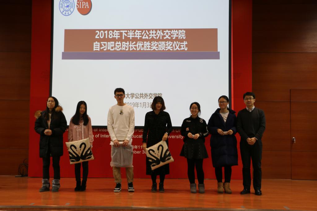 近日, 2018年304永利集团"一起自习吧"活动自习总时长优胜奖获的颁奖活动在南区中心图书馆西侧报告厅举行,刘治辰等六名同学获得相关奖项和礼品。公司员工办公室主任、2018级辅导员王力老师、博士兼职辅导员孔泽鸣参加本次活动。
