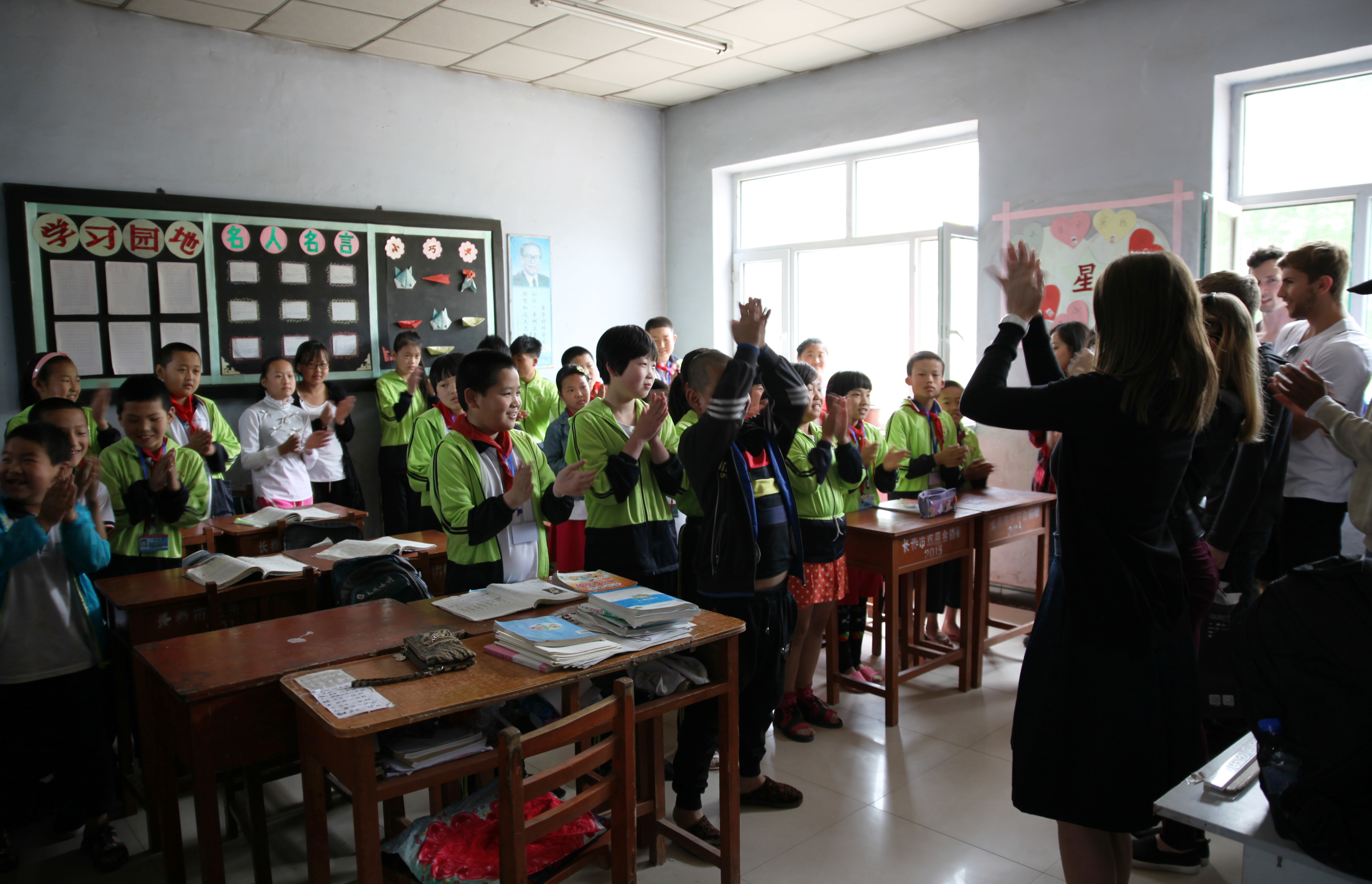 上午7:30从员工谊会馆出发,经过两个多小时的车程,304永利集团师生和正在公司参加暑期班的里贾纳大学的职工一同来到了农安县万金塔乡小城子村小学。当大家一走进五年级一班的教室,就立即被孩子们热烈的欢迎声所感染了。一张张稚气未脱的脸庞上洋溢着最纯真的微笑。微笑是没有国界的,这些来自异国的大哥哥大姐姐们被这些纯真的笑脸瞬间感动了。