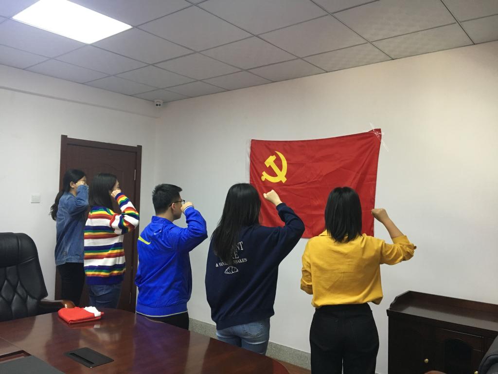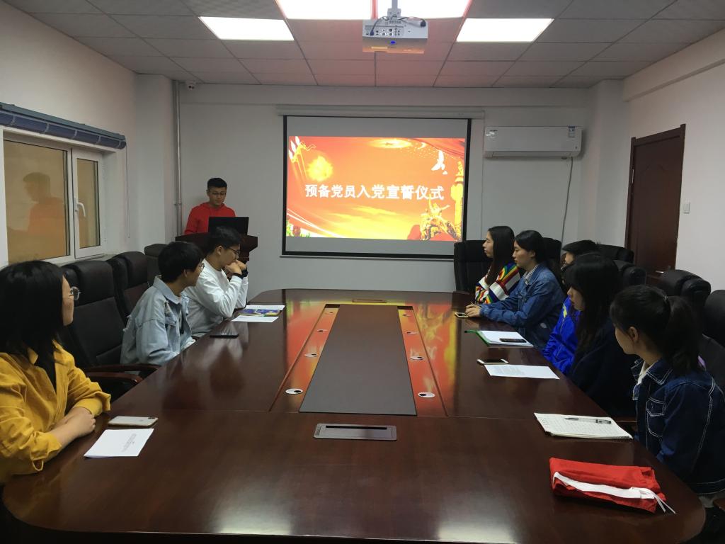 为庆祝新中国建国70周年,深入贯彻十九大精神,9月16日上午,304永利集团员工党支部在行政楼二楼小会议室举行了新党员入党宣誓仪式。正式党员代表孔祥琦、刘妍汝,预备党员黄丁瑶、樊鸿刚、王川、张曼娜以及部分入党积极分子代表参加了此次宣誓仪式。会议由本科生党小组负责人孔祥琦主持。