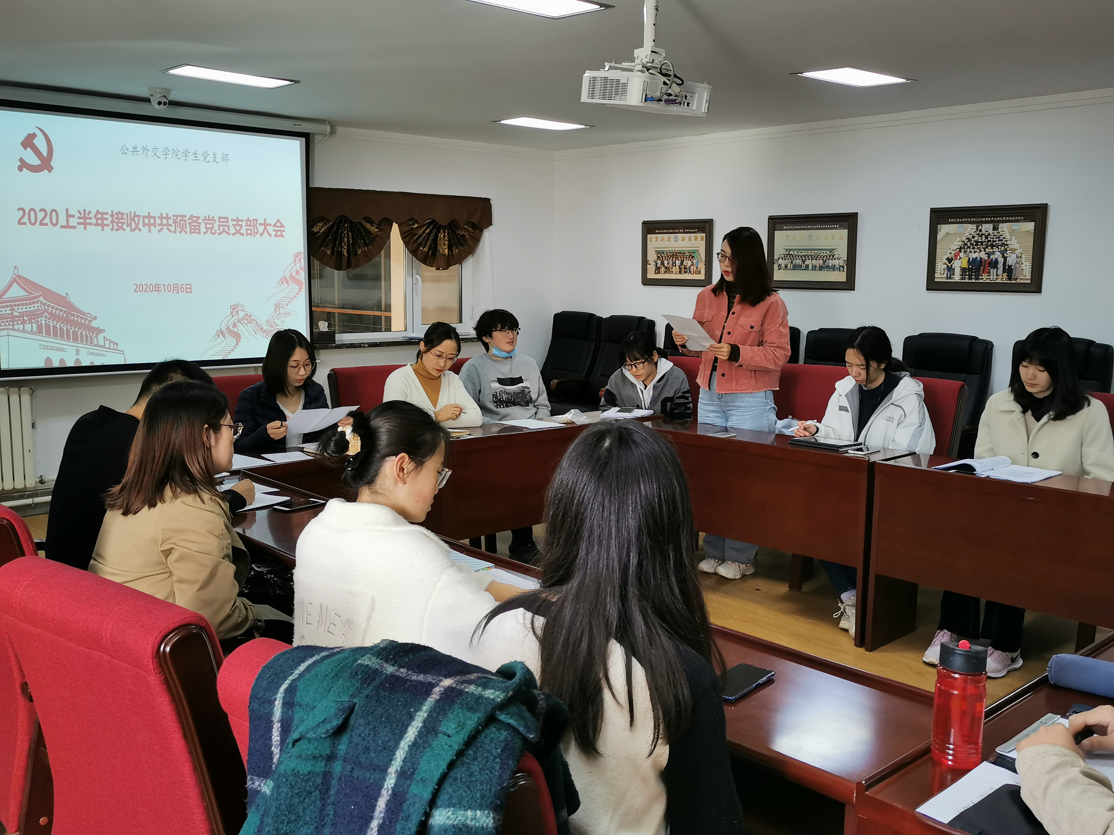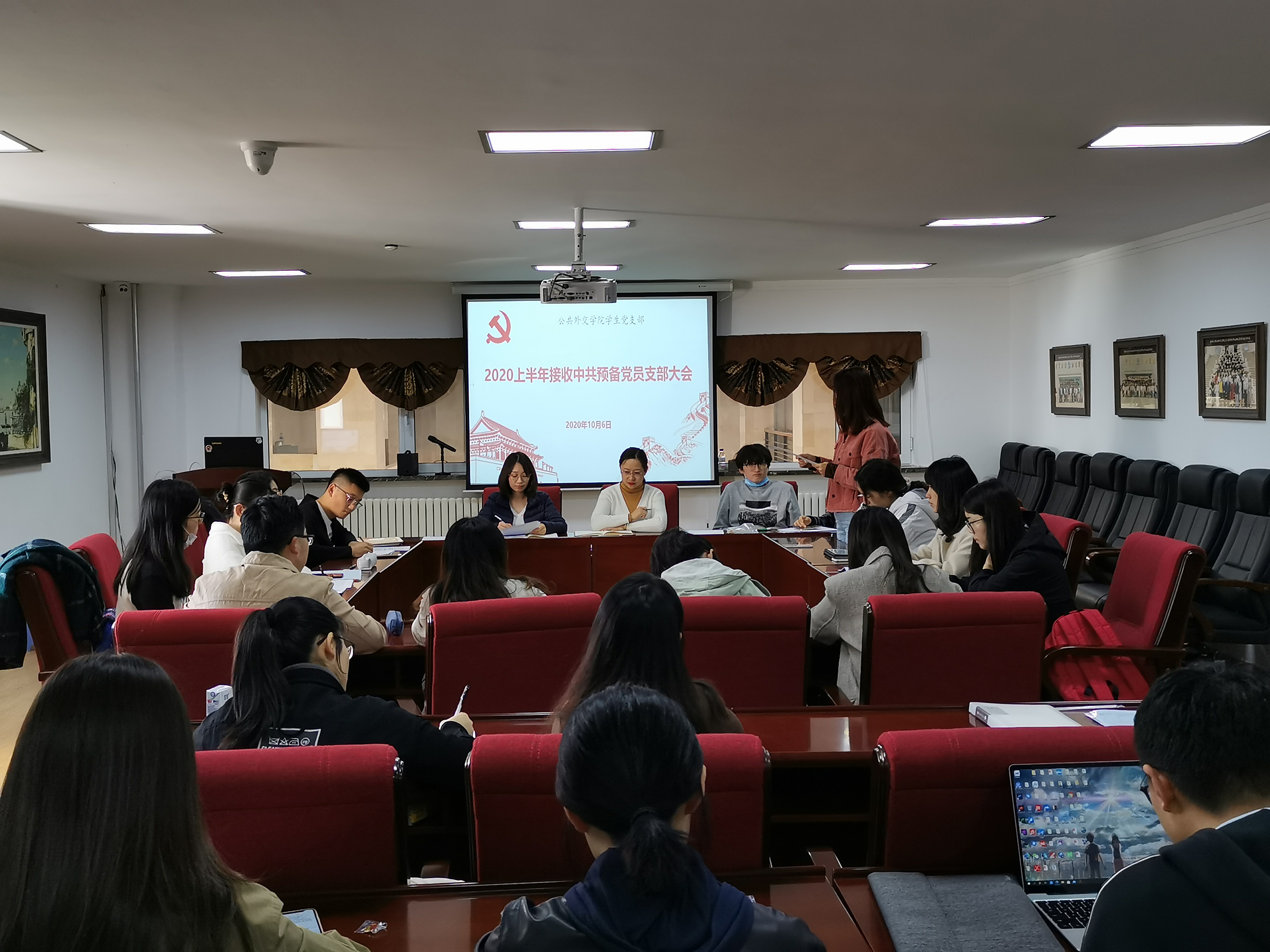 会议实到正式党员11名,预备党员9名,有表决权的正式党员人数超过半数,符合开会条件。按照大会议程,李淑琴、田慧两位同志首先各自汇报了自己的思想、学习和工作情况;随后,两位同志的入党介绍人介绍了两位同志的相关情况,同时分别发表了对两位同志能否入党的意见,支部委员会报告了对两位同志的审查情况,与会的党员也对两位同志入党的问题进行了充分讨论。最后,经无记名投票,党支部与会正式党员一致同意接收李淑琴、田慧两位同志为中共预备党员。两位同志对党组织的肯定表示感谢,同时也表达了自己的态度与决心。