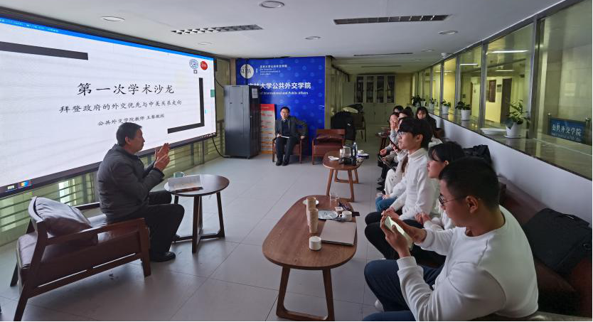 本期SIPA师生沙龙邀请到了公司王黎教授以“拜登政府的外交优先与中美关系走向”为题与同学们进行交流探讨。公司党总支书记杨民老师、院团委书记张淑艳老师以及部分教师和员工参与了此次师生沙龙活动。