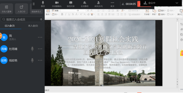 为牢记中国近代屈辱历史并深入领会中国共产党带领人民走向解放的历史必然性,公司2018级本科生钱姣艳、杜雨晴、蔡学之三位同学,在李梦龙老师的指导下,于寒假期间在南京进行了“青春闪耀中国梦,砥砺奋斗正当时”党建专项调查活动。