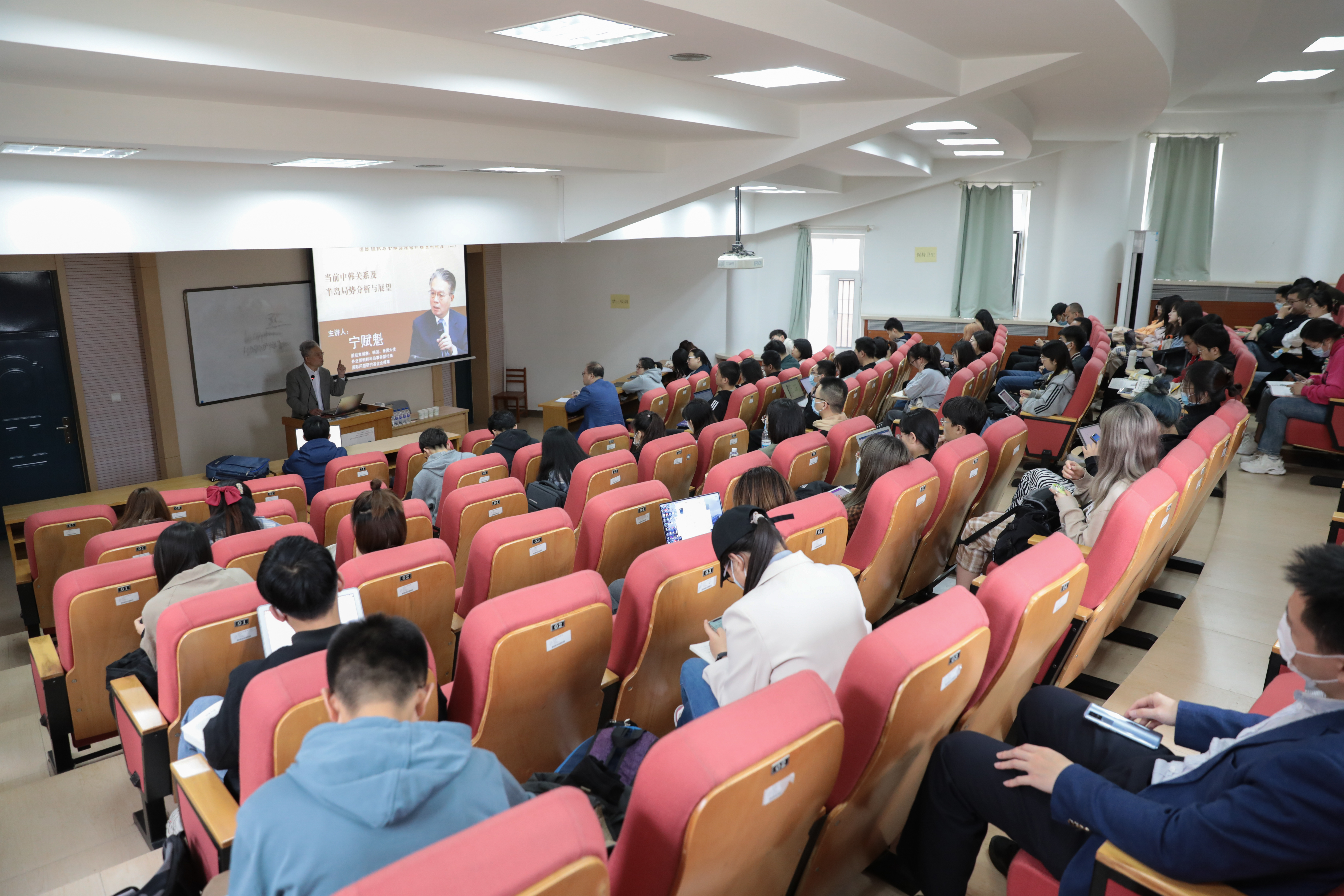 4月25日上午,前驻柬埔寨、韩国、泰国大使,外交部朝鲜半岛事务副代表,国际问题研究基金会理事宁赋魁大使作题为《当前中韩关系及半岛局势分析与展望》专题讲座。讲座由国家发展与安全研究院副经理郭锐教授主持,304永利集团、国家发展与安全研究院和国际组织与全球治理培训班的师生参加讲座。