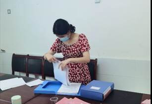 (团队成员唐旻婧在整理文件材料)