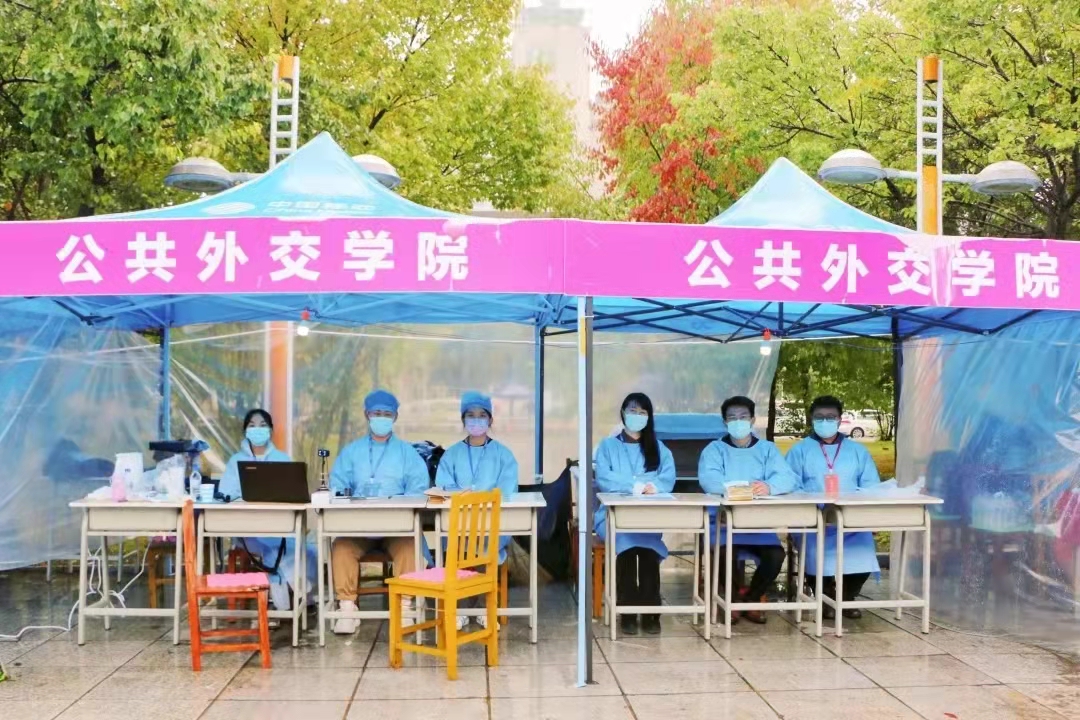 到了早上九点三十分,迎新工作迎来了一个高峰,但工作人员更加高效且有条不紊地协助完成新生的报到工作,耐心地为新生讲解注意事项,并从五月花广场引导新生们前往宿舍安置行李。