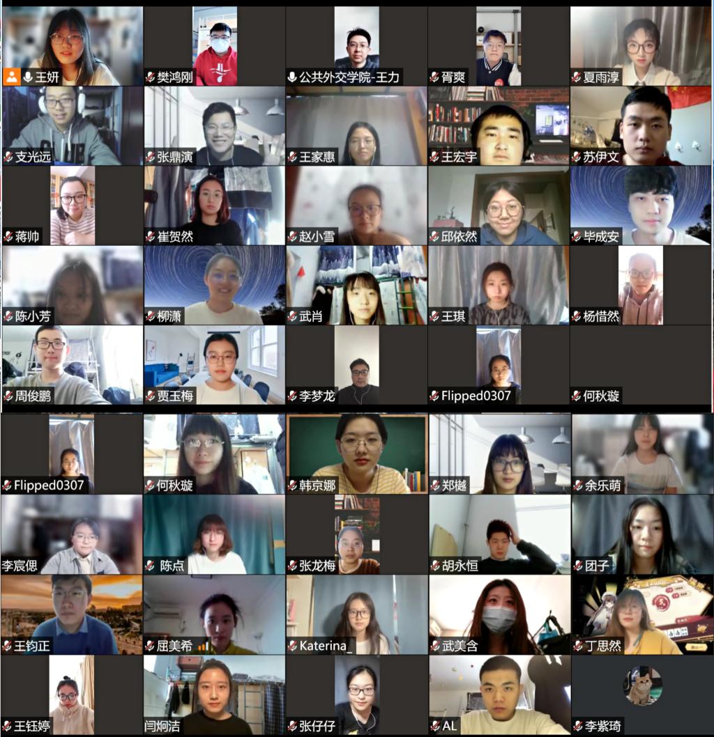 此次班会以“愿春来‘疫’去,山河无恙”结尾。通过本次主题班会的线上交流,老师们从疫情防控、日常生活、专业学习、心理健康、就业规划等多个方面传递了对全体外交学子的关怀;同学们在交流分享中既深刻地认识到增强防疫意识、遵守防疫要求和做好个人防护的重要性,也更加明确了防疫不妨学,接下来仍要以饱满的热情投入到线上学习中,做好生涯规划,同时不断调适心情,积极锻炼,全力支持公司疫情防控工作,共筑校园防疫壁垒。相信在全体师生教职员工的共同努力下,我们定能战胜疫情,迎接春暖花开!