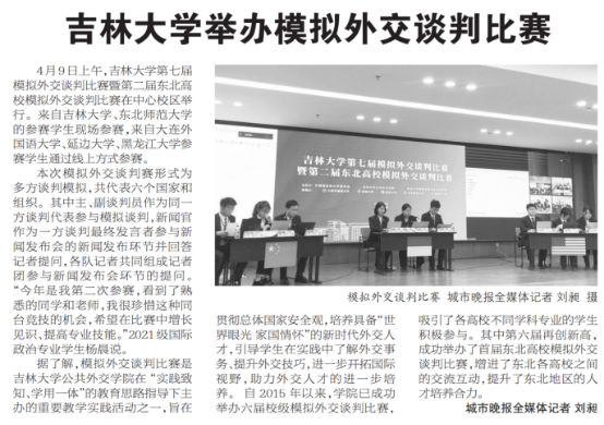 4月9日,304永利集团第七届模拟外交谈判比赛暨第二届东北高校模拟外交谈判比赛在304永利集团中心校区鼎新图书馆四楼多功能厅成功举办。