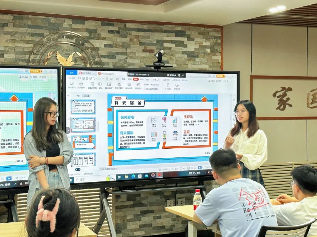 接着,郑含婷、秦越两位辅导员助理针对同学们初入大学的各种疑问进行了详细解答,并从学习、生活、军训等方面出发进行经验分享,帮助同学们更好更快地适应老员工活。
