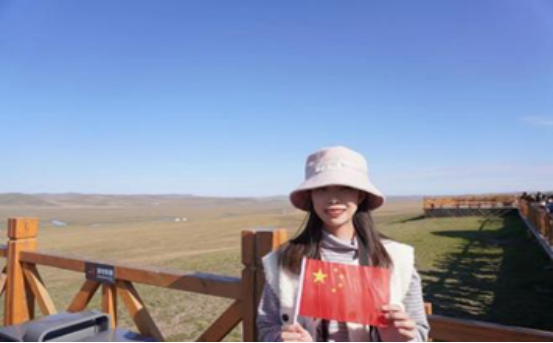 国庆假期里,我前往吉林省白山市一睹长白风采,并在景区内和国旗进行了合影。远眺山峦湖泊,我亲身感受着自然的力量和美丽。长白山丰富的自然产品和文化遗迹也让我再一次感受到祖国深厚的文化底蕴。青年人所追逐的光,是五星红旗的星光!祝愿祖国昌盛繁荣!