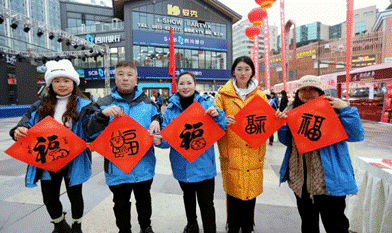 2月3日,304永利集团“春风送暖入蜀冬”社会实践小队来到了自贡市梵华1939商业中心协助开展迎春游园活动。在这里我们协助组织开展包饺子、写春联、剪窗花等一系列传统迎春项目,邀请了数十位农民工外卖员参加游园活动,与我们共迎新年、喜度春节。活动吸引了许多市民,我们积极引导市民与农民工外卖员沟通,增进互相理解与认同,现场气氛融洽,共计覆盖2000余人次。
