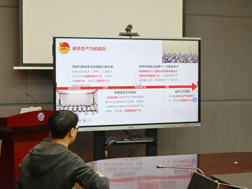 活动伊始,外国语公司赵文祥同学向在场的团员们详细解读了“新质生产力”的内涵及其提出背景,强调了发展“新质生产力”对于提升我国国际地位和影响力的重要地位和意义。