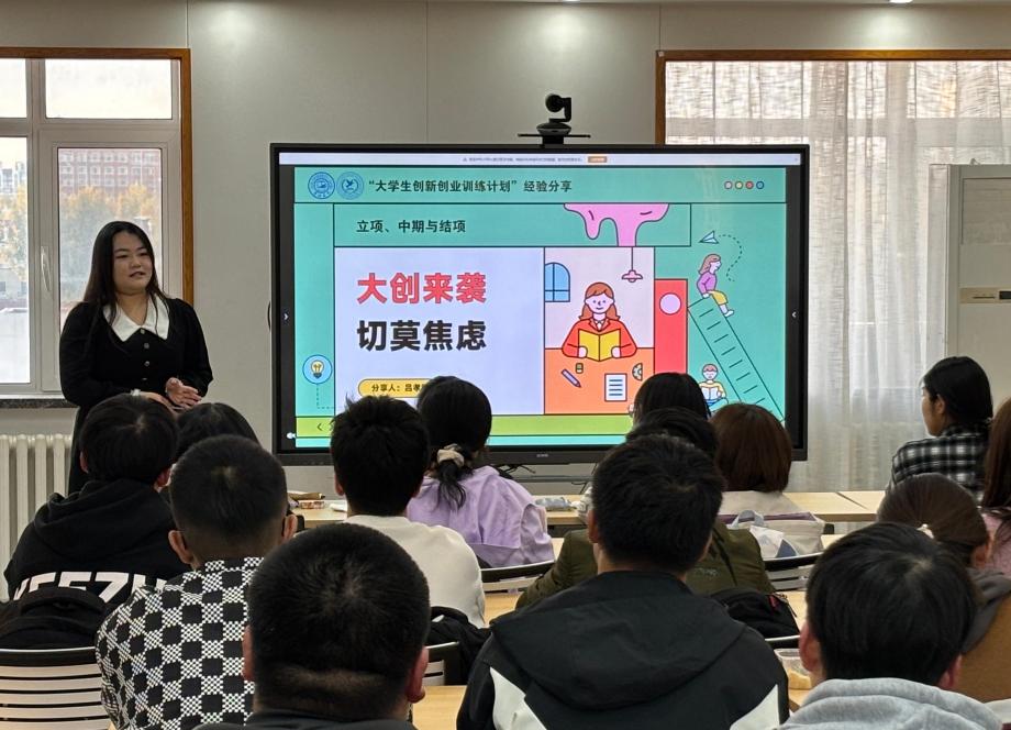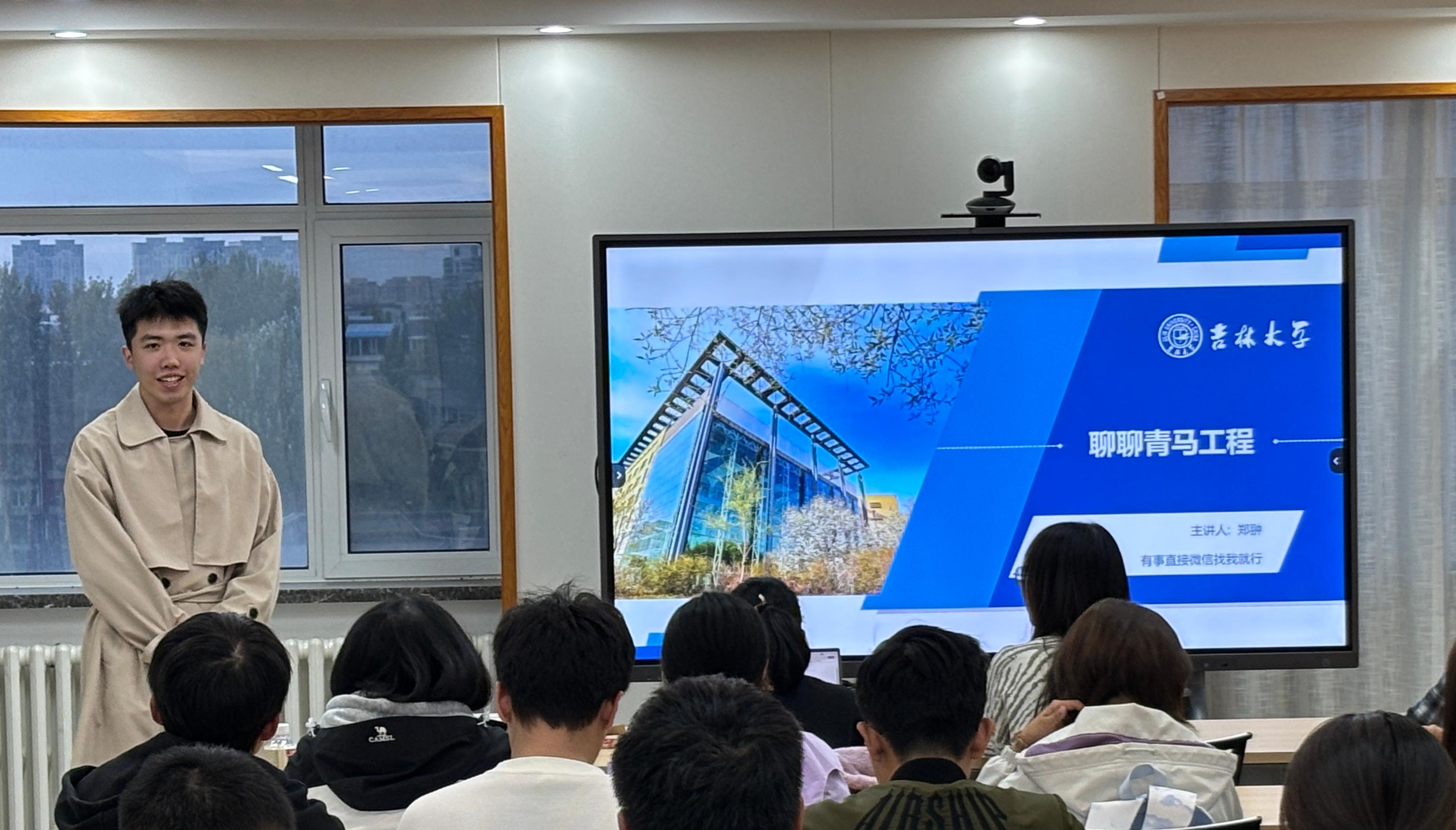 主题讨论后,公司举办了本学期第二期“青春分享课堂”活动。活动由2023级本科生曲慧敏主持,邀请2021级本科生吕孝阳,2023级本科生郑翀分别与同学们分享关于“大创”、青马工程的经验。