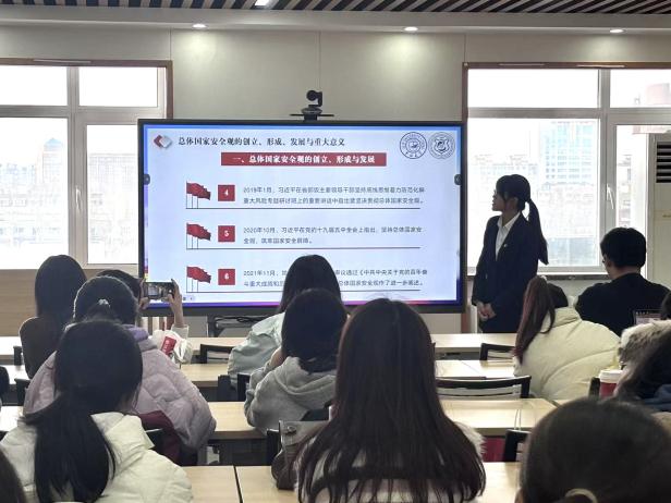 张仁同学围绕“全面增强大中小员工国家安全意识”进行讲解,向同学们介绍不同学习阶段的教育目标与路径。通过学习,同学们进一步认识到,处于大学阶段的我们,要深刻理解中华民族命运与国家的关系,将总体国家安全观贯彻到日常行动中。