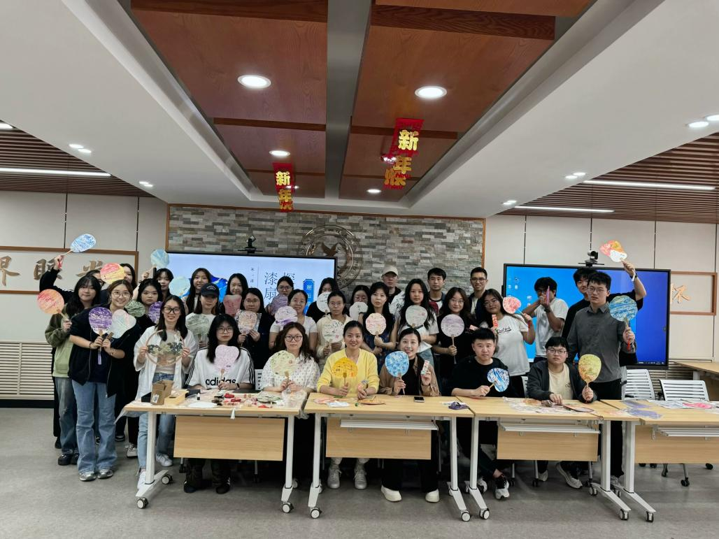 座谈会后,同学们开始漆扇制作环节。各式各样的色彩纹理既如斑斓回忆,也如无限可能的未来,为大家留下了一份特别的毕业纪念。
