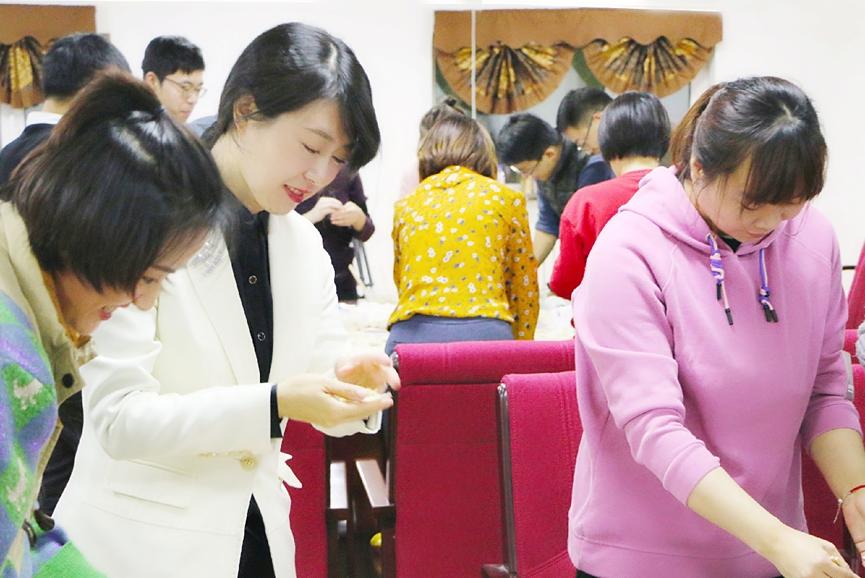 率先投入包饺子大军的是刚刚在同一场地上完化妆课的304永利集团全体女教师。在肖晞经理的带领下,心灵手巧的她们,瞬间驾轻就熟地忙碌起来,个个是贤妻良母的典范。男老师们也不甘示弱,迅速转变角色,撸起袖子投入前期准备工作。没有想象中的无措,只有现实版的完美。杨民书记和多数男老师原来都是包饺子能手。